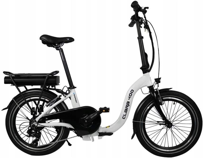 Inteligentny mechanizm szybkiego zwalniania! Wyposażony w inteligentny mechanizm zaciskowy, Blaupunkt Clara 400 można łatwo złożyć, a tym samym zmniejszyć o połowę. W zaledwie 4 krokach składany e-rower można zmienić w poręczny „pakiet”. Niska waga ok. 22 kg sprawia również, że łatwo i przyjemnie można zabrać ze sobą autobusy i pociągi. Mocny silnik! Mocny 36-woltowy silnik z piastą tylną o sile 50 Nm, który wraz ze zintegrowanym i mocnym akumulatorem litowo-jonowym tworzy doskonały zespół, zapewnia doskonałe wsparcie. Silnik jest trwały i bezobsługowy, a w celu ochrony akumulatora zintegrowany system BMS (Battery Management System) zawsze zapewnia optymalne zasilanie energią. Składany rower elektryczny Clara 400 wyposażony jest w wymienną baterię i praktyczny bagażnik. waga ok. 17,5 kg (z baterią) do 60 km * zasięg * Zasięg zależy od obciążenia, stylu jazdy i obszaru użytkowania. bateria Odległość na jedno ładowanie akumulatora (tryb wspomagania pedału) 70 km energia Moc silnika 250 W Napięcie akumulatora 36 V Pojemność akumulatora 8,8 Ah Technologia baterii litowo-jonowa (Li-ion) ergonomia Regulowana wysokość siedziska Kolor produktu Czarny i biały Funkcje Maksymalna waga ładunku 110 kg Opony tylne (imperialne) 50,8 cm (20 cali) Typ silnika bezszczotkowy Sterowanie hamulcem V-brake control Waga i wymiary Głębokość 1600 mm Waga baterii 2,5 kg Szerokość po złożeniu 43 cm szerokość 61mm Wysokość po złożeniu 70 cm Głębokość po złożeniu 80 cm Waga i wymiary Wysokość 1100 mm moc Autonomia (maks.) 60 km Usługi Moment obrotowy (maks.) 50 Nm Cechy szczególne Składany Szczegóły techniczne Waga (z baterią) 22 g Maksymalna prędkość (tryb e-roweru) 25 km/h Rozmiar opony (angielski) 50,8 cm (20 cali) Opony przednie (imperialne) 50,8 cm (20 cali) Liczba prędkości 6 Przedni widelec materiał aluminium Materiał ramy aluminium Materiał obręczy aluminium Tylny bagażnik