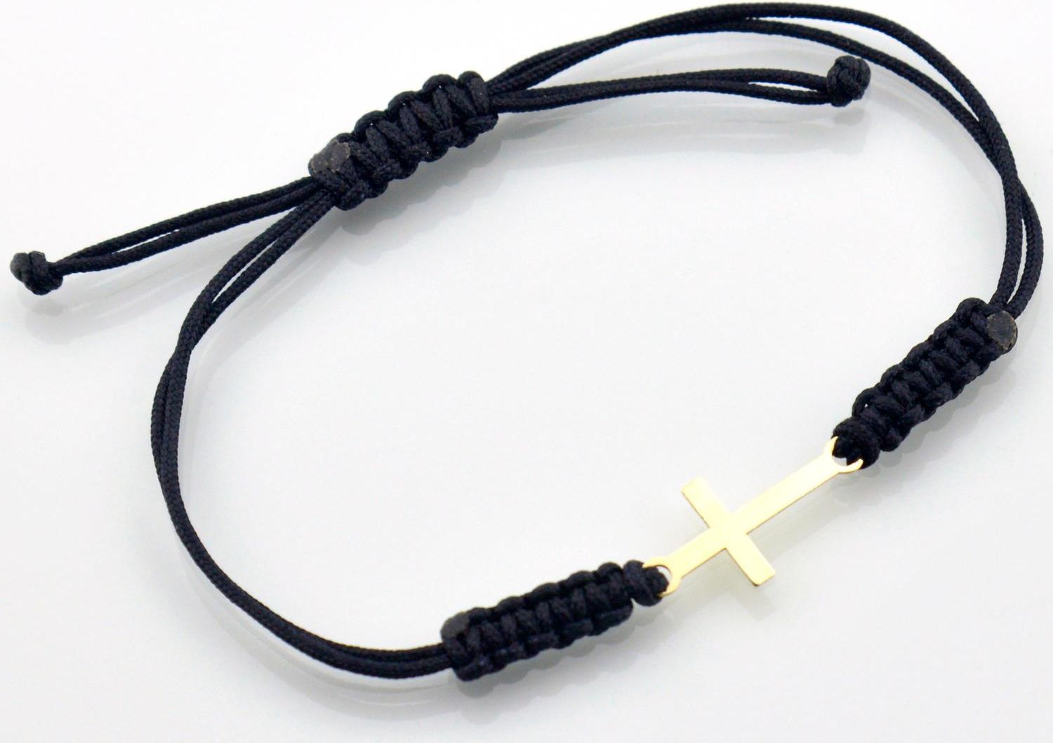 Bransoletka Damska Cordelle Krzyżyk - Złota zawieszka (Próba 585) - Czarny Rzemyk - BZ-041 Rzeszów