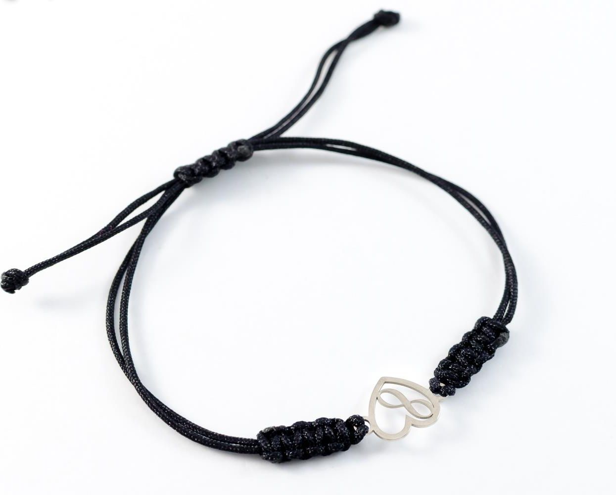 Bransoletka Damska Cordelle Nieskończoność w sercu - Srebrna zawieszka (Próba 925) - Czarny Rzemyk - BSR-025 Rzeszów