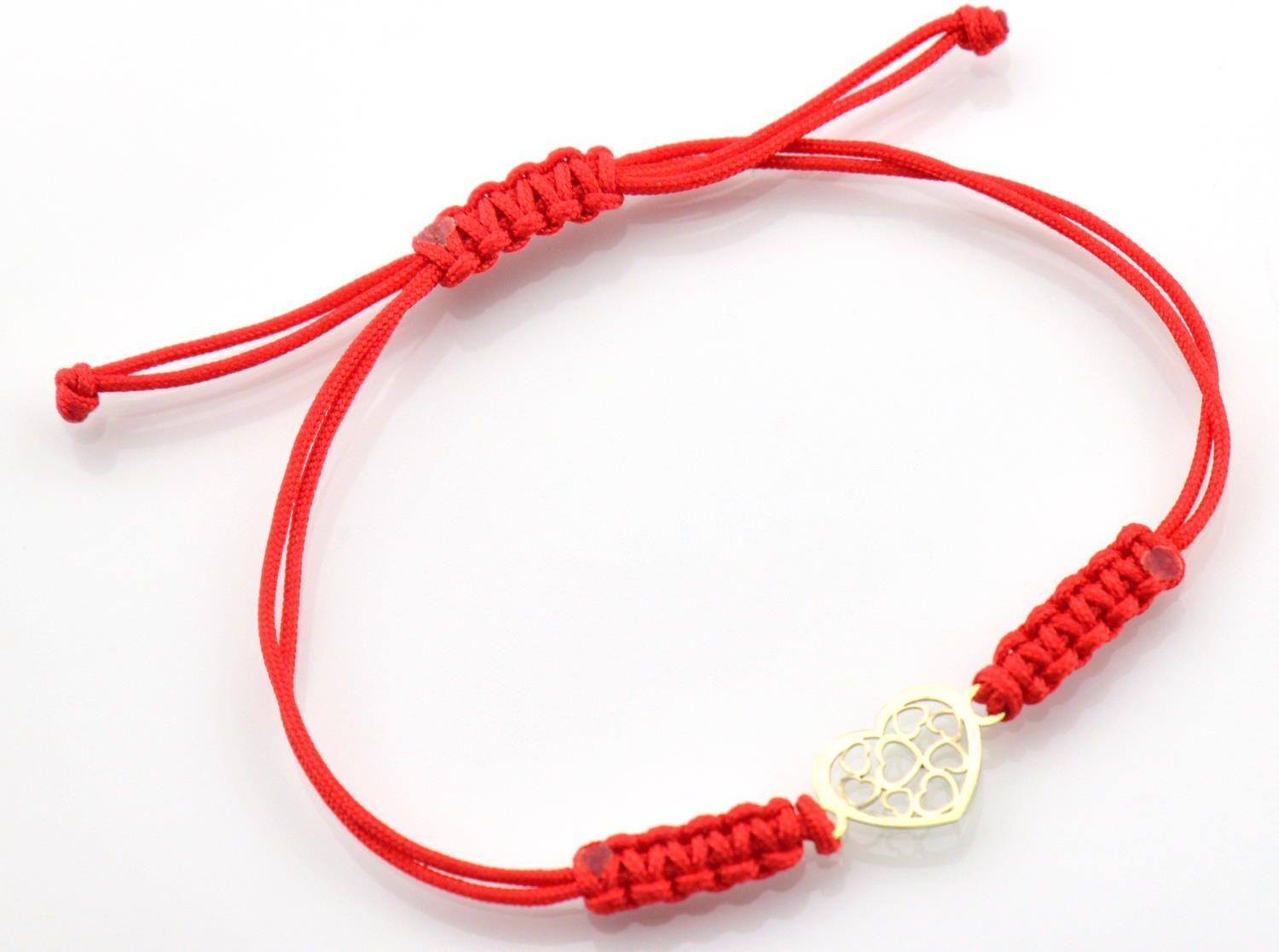 Bransoletka Damska Cordelle Serca - Złota zawieszka (Próba 585) - Czerwony Rzemyk - BZ-048 Rzeszów