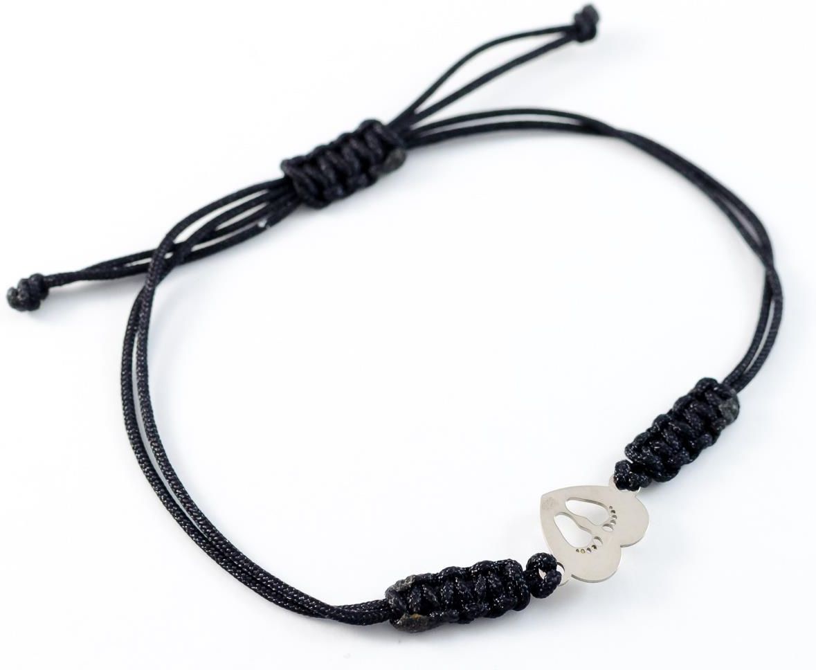 Bransoletka Damska Cordelle Stopy w sercu - Srebrna zawieszka (Próba 925) - Czarny Rzemyk - BSR-014 Rzeszów
