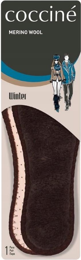 WKŁADKI COCCINE MERINO WOOL r. 38 (665/42/C) CIEPŁE WKŁADKI DO BUTÓW NA ZIMĘ Z WEŁNY MERINO Wiele osób zmaga się z problemem zimnych stóp. Ciągłe poczucie zimna to nic przyjemnego – zwłaszcza kiedy podróżujemy podczas chłodnej pogody, albo pracujemy w zimnym pomieszczeniu. Rozwiązaniem problemu jest ciepła wkładka. Jeżeli jeszcze wykonana jest z naturalnych materiałów – tym lepiej. Dlatego stworzyliśmy wkładkę Merino Wool. Ciepła wełna wewnątrz buta to przyjemność i komfort przez cały chłodny dzień. Wełna merynos posiada unikalne właściwości. Latem wełna oddycha i nie dopuszcza do przegrzania organizmu owiec, a zimą grzeje, chroniąc przed niskimi temperaturami, śniegiem i deszczem. Zastosowanie tego rodzaju wełny w procesie produkcji wkładek pozwala uzyskać wkładkę ocieplającą stopy. Warstwa wierzchnia wykonana jest z 100% wełny owczej merynos, która dzięki swoim wyjątkowym naturalnym właściwościom termoaktywnym oraz wentylacyjnym daje uczucie przyjemnego ciepła oraz świeżości. Spodnia usztywniająca warstwa wkładki dodatkowo izoluje i idealnie przylega do wyściółki buta zapobiegając zwijaniu i przesuwaniu w bucie. Zapewniają ciepło i przyjemnie relaksują zmęczone stopy. Najważniejsze cechy Naturalna wełna merynos. Ociepla stopy. Poprawia samopoczucie. Wełna relaksuje zmęczone stopy. Maksymalizuje komfort z chodzenia. Zmniejsza zmęczenie stóp. Amortyzuje stopy. Zabezpiecza wyściółkę buta – wydłuża jego życie. Szczególnie polecana dla osób Pracujących w niskich temperaturach. Poszukujących ciepłej wkładki. Podróżujących w ujemnych temperaturach.