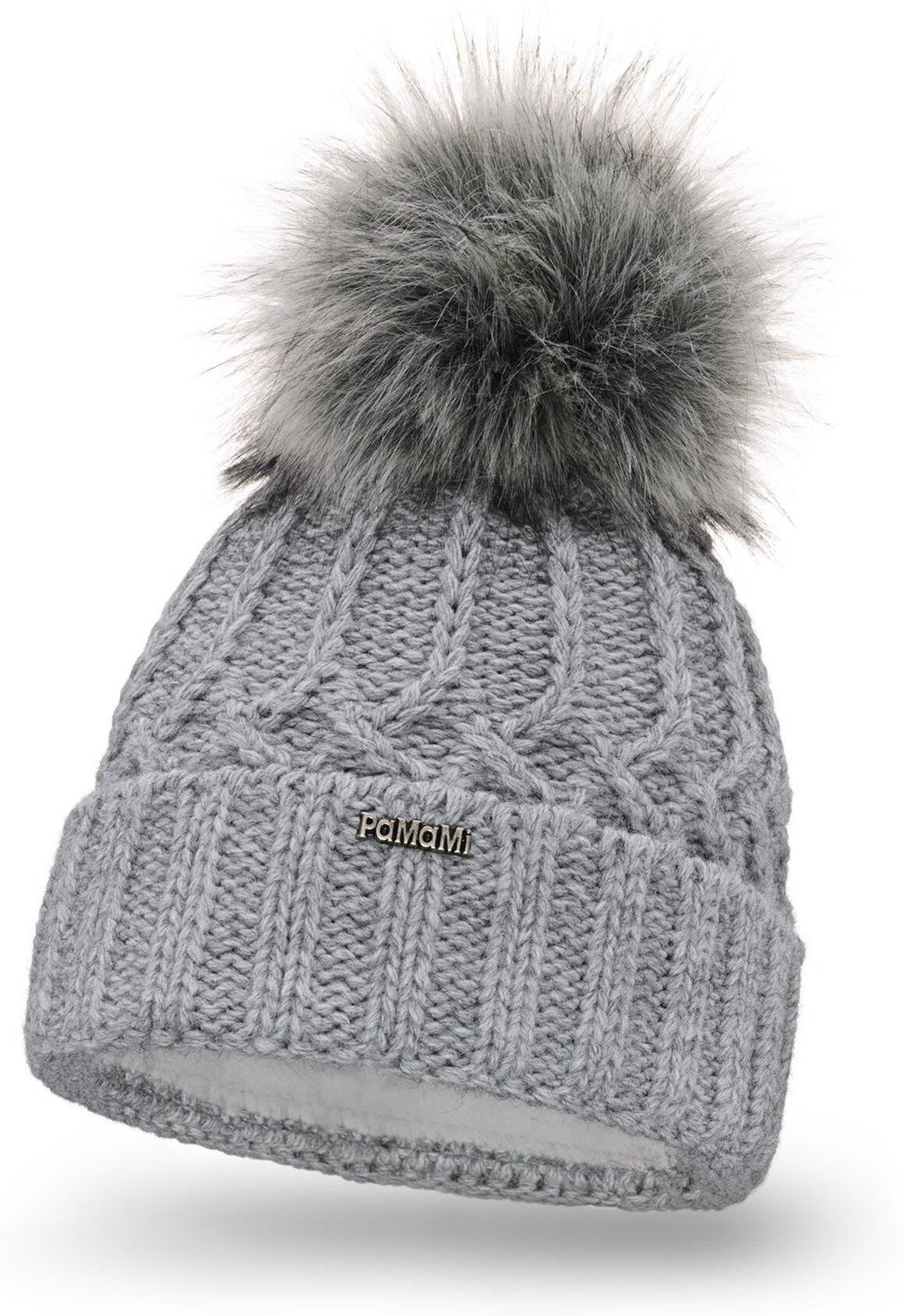 Zimowa Czapka Damska z Pomponem PaMaMi Jasnoszara Jasnoszara zimowa czapka damska z pomponem to idealne rozwiązanie na siarczyste mrozy. Wykonana z miękkiej mieszanki 85% akrylu i 15% poliamidu, zapewnia komfort i ciepło dzięki polarowemu podszyciu (3/4). Standardowy krój z wywinięciem iwzór Aran …