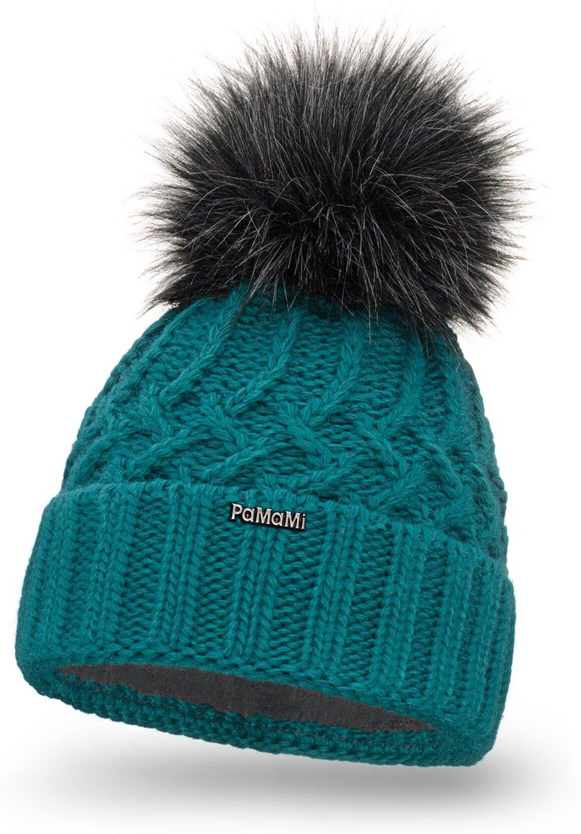 Zimowa Czapka Damska z Pomponem PaMaMi Morska Morska zimowa czapka damska z pomponem to idealne rozwiązanie na siarczyste mrozy. Wykonana z miękkiej mieszanki 85% akrylu i 15% poliamidu, zapewnia komfort i ciepło dzięki polarowemu podszyciu (3/4). Standardowy krój z wywinięciem iwzór Aran dodają czapce elegancji i funkcjonalności. Futerkowy pompon z długim włosem to modny akcent, który dodaje uroku. Czapka doskonale dopasowuje się do głowy, zapewniając optymalną temperaturę i ochronę nawet w najbardziej wymagających warunkach. Główne cechy Obwód głowy: 55-58 cm Wymiary czapki: 22 cm szerokość, 23 cm wysokość Materiał: 85% akryl, 15% poliamid Fason: z wywinięciem Polarowe podszycie: tak (3/4) Mrozoodporność: idealna na siarczyste mrozy Styl: wzór Aran Pompon: futerkowy, długi włos Najważniejsze korzyści Ochrona przed zimnem: polarowe podszycie zapewnia ciepło i izolację termiczną Komfort noszenia: miękki materiał, który nie drażni skóry Stylowy design: wzór Aran i futerkowy pompon dodają elegancji i uroku Uniwersalność: idealna na zimowe spacery i codzienne stylizacje Specyfikacja Obwód głowy: 55-58 cm Wymiary czapki: 22 cm szerokość, 23 cm wysokość Materiał: 85% akryl, 15% poliamid Fason: z wywinięciem Polarowe podszycie: tak (3/4) Styl: wzór Aran Pompon: futerkowy, długi włos FAQQ: Czy czapka dobrze chroni przed zimnem? A: Tak, polarowe podszycie (3/4) skutecznie izoluje przed chłodem.Q: Czy materiał jest wygodny? A: Tak, czapka jest wykonana z miękkiego akrylu i poliamidu, który nie drażni skóry.Q: Czy czapka pasuje do różnych stylizacji? A: Tak, wzór Aran i futerkowy pompon sprawiają, że czapka pasuje do wielu zimowych stylizacji.