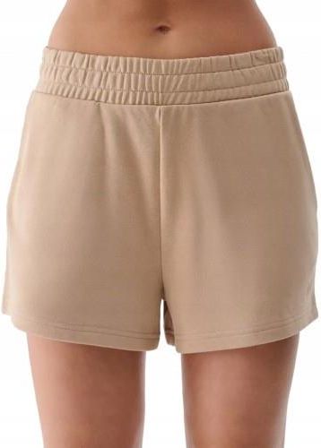Damskie spodenki dresowe firmy 4F model: 4FWMM00TSHOF542 kolor: beżowy 83S Lekkie i wygodne spodenki dresowe dla kobiet, które sprawdzą się zarówno na co dzień, jak i podczas aktywności. Te damskie spodenki dresowe łączą komfort, wysoką jakość wykonania oraz ponadczasowy design, który dopasujesz do wielu stylizacji. Komfortowy materiał Spodenki zostały wykonane z bawełny (79%) z domieszką poliestru (21%), dzięki czemu są przyjemne w dotyku, oddychające i trwałe. Dzianina french terry (280 gsm) zapewnia miękkość i przewiewność – zewnętrzna warstwa jest gładka, a wewnętrzna ma delikatne pętelki, co zwiększa komfort noszenia. Swobodny krój Model o regularnym fasonie idealnie dopasowuje się do sylwetki. Krótkie nogawki sięgające do połowy uda zapewniają wygodę i pełną swobodę ruchów. Elastyczny pas gwarantuje dobre dopasowanie, jednak nie posiada dodatkowej regulacji. Funkcjonalne detale Dwie boczne kieszenie – idealne na klucze, telefon lub inne drobiazgi Jednolita kolorystyka – pasuje do różnych stylizacji Idealne na ciepłe dni, sport i codzienne wyjścia. Postaw na wygodę i jakość! PARAMETRY TECHNICZNE: materiał główny: Bawełna 79%, Poliester 21% miękka dzianina z zawartością bawełny gramatura: 280 gsm krój regularny wysokość stanu: średnia 2 otwarte kieszenie w pasie elastyczna gumka z trokami