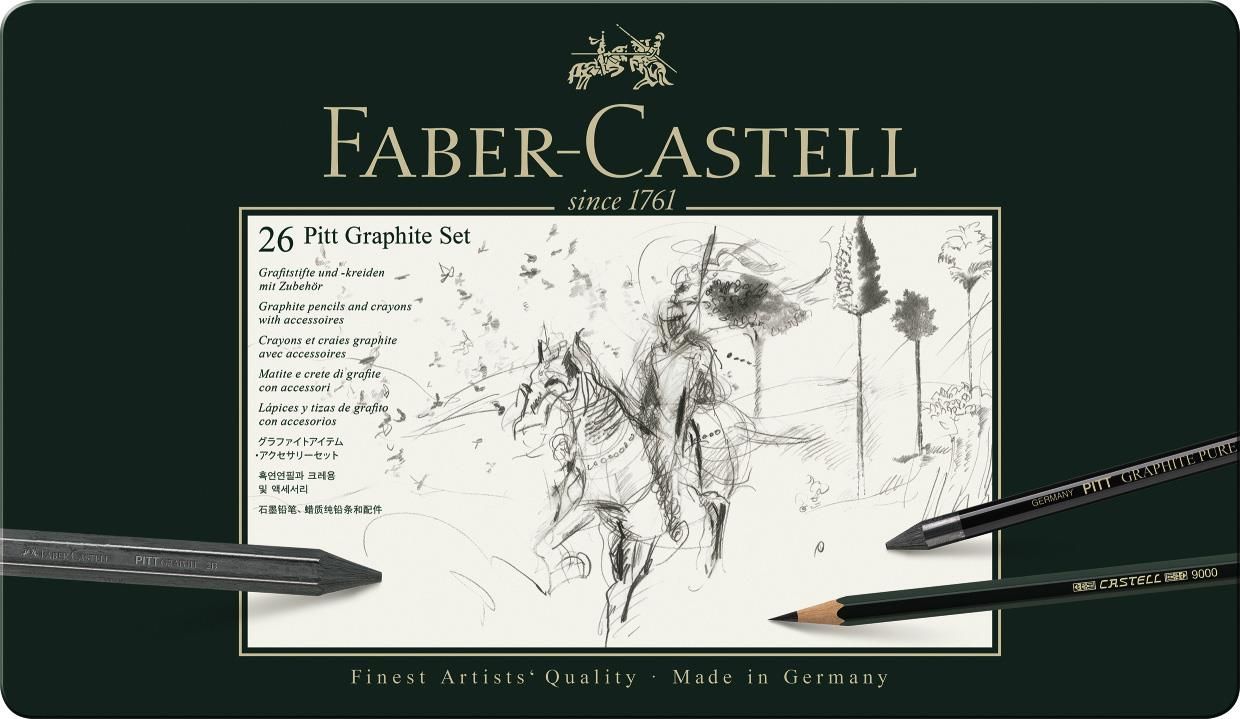 - specjalny zestaw wysokiej jakości ołówków i grafitów, łączący profesjonalne standardy - wysokiej jakości ołówki z czystego grafitu w ochronnej osłonie - grafity idealne do ekspresyjnego cieniowania - wielkość zestawu: duży - metalowe opakowanie