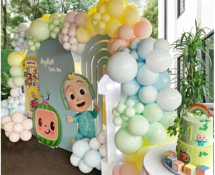 Girlanda balonowa (zestaw), pastelowy, 147 szt. Gotowy zestaw do stworzenia cudownej dekoracji balonowej. Kolorystyka na tej karcie produktu to: kolory pastelowe. W skład zestawy wchodzą balony lateksowe (gumowe): 10 cali, jasno różowe 20 szt. 10 cali, jasno niebieskie 20 szt. 10 cali, żółte 20 szt. 10 cali, jasno zielone 20 szt. 10 cali, jasno fioletowe 20 szt. 5 cali, jasno niebieskie 10 szt. 5 cali, żółte 10 szt. 5 cali, jasno zielone 10 szt. 5 cali, jasno fioletowe 10 szt. 12 cali, jasno niebieskie 2 szt. 12 cali, jasno zielone 2 szt. kropelki kleju, wiązadełko do balonów, taśmę do girlandy. Zestaw jest do samodzielnego montażu i wykonania. Jeśli potrzebujesz pompkę do balonów lub inne akcesoria zapraszamy do Naszych pozostałych ofert. Girlanda balonowa to dekoracja składająca się z balonów, które są przymocowane do siebie za pomocą specjalnej linii lub sznurka ewentualnie taśmy do girland. Zestaw może zawierać różnego rodzaju balony, w różnych kolorach i rozmiarach, oraz akcesoria potrzebne do zawieszenia girlandy. Girlanda balonowa może być używana do dekoracji różnych wydarzeń, takich jak urodziny, wesela, imprezy tematyczne, a także jako ozdoba do pokoju dziecka. Prosty i szybki montaż - girlanda balonowa jest łatwa w montażu i nie wymaga specjalistycznej wiedzy ani narzędzi. Uniwersalność - girlandy balonowe mogą być stosowane na różnego rodzaju wydarzeniach, takich jak urodziny, wesela, imprezy tematyczne. Niski koszt - w porównaniu z innymi rodzajami dekoracji, girlandy balonowe są stosunkowo tanie. Wiele możliwości kreatywnych - girlandy balonowe mogą być tworzone w różnych kształtach, kolorach i rozmiarach, co pozwala na wyrażenie indywidualnego stylu i oryginalności.