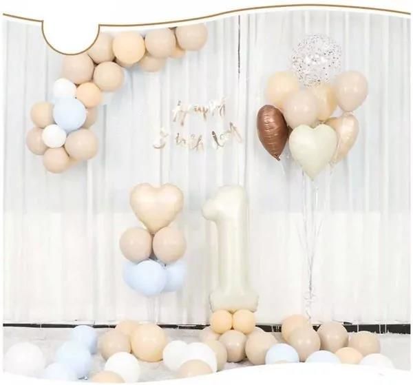 Gotowy zestaw do stworzenia cudownej dekoracji balonowej. Kolorystyka na tej karcie produktu to: kremowym. W skład zestawy wchodzą balony lateksowe (gumowe) i foliowe: 32 cali w kolorze: kremowym cyfra "1", 1 szt. 18 cali w kolorze: kremowym, 2 szt. 18 cali w kolorze: czekoladowym, 1 szt. 18 cali w kolorze: ciemno beżowym, 1 szt. 12 cali w kolorze: transparentnym z konfetti, 1 szt. 10 cali w kolorze: ciemno kremowym, 15 szt. 10 cali w kolorze: kremowym, 20 szt. 10 cali w kolorze: niebieskim, 10 szt. 5 cali w kolorze: białym , 10 szt. baner urodzinowy, 1 szt. kropelki kleju wiązadełko do balonów taśmę do girlandy Zestaw jest do samodzielnego montażu i wykonania. Jeśli potrzebujesz pompkę do balonów lub inne akcesoria zapraszamy do Naszych pozostałych ofert. Liczba widniejąca na opakowaniu nie wlicza dodatków typu (wiązadełka, kleju lub taśmy). My podajemy ogólną wartość ilościową znajdującą się w opakowaniu girlandy. Girlanda balonowa to dekoracja składająca się z balonów, które są przymocowane do siebie za pomocą specjalnej linii lub sznurka ewentualnie taśmy do girland. Zestaw może zawierać różnego rodzaju balony, w różnych kolorach i rozmiarach, oraz akcesoria potrzebne do zawieszenia girlandy. Girlanda balonowa może być używana do dekoracji różnych wydarzeń, takich jak urodziny, wesela, imprezy tematyczne, a także jako ozdoba do pokoju dziecka. Prosty i szybki montaż - girlanda balonowa jest łatwa w montażu i nie wymaga specjalistycznej wiedzy ani narzędzi. Uniwersalność - girlandy balonowe mogą być stosowane na różnego rodzaju wydarzeniach, takich jak urodziny, wesela, imprezy tematyczne. Niski koszt - w porównaniu z innymi rodzajami dekoracji, girlandy balonowe są stosunkowo tanie. Wiele możliwości kreatywnych - girlandy balonowe mogą być tworzone w różnych kształtach, kolorach i rozmiarach, co pozwala na wyrażenie indywidualnego stylu i oryginalności.