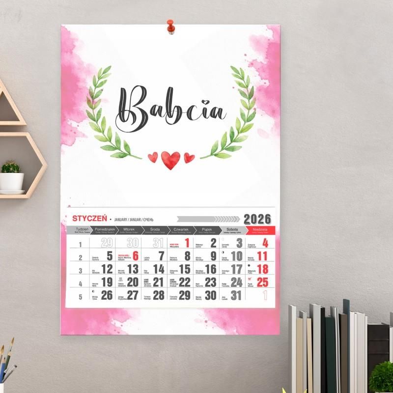 Kalendarz ścienny 2026 z nadrukiem dla babci - Terminarz Rzeszów