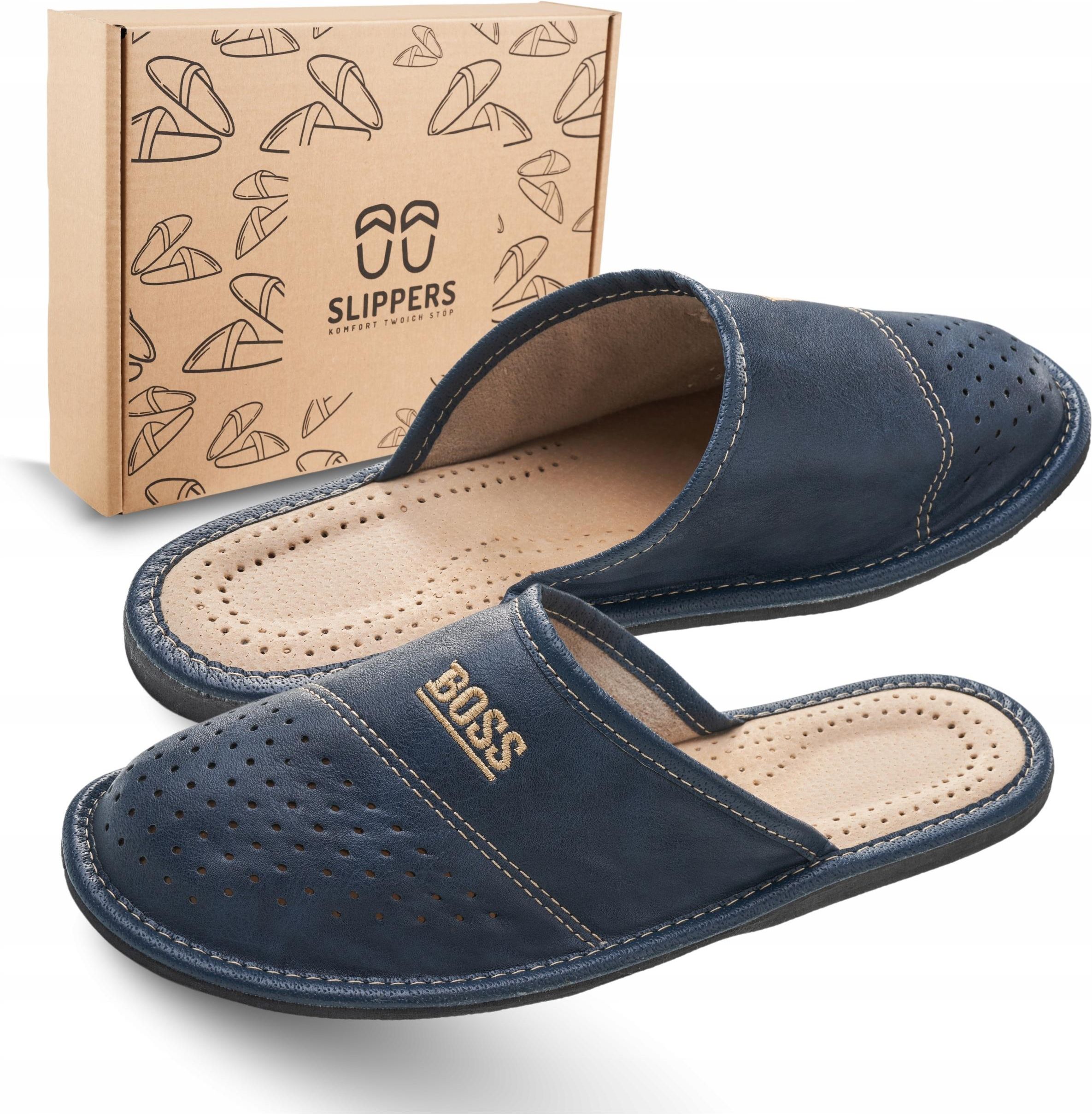 Styl i wygoda dla faceta z klasą – kapcie męskie Slippers BOSS M-2040 r. 43 | Made in Poland Elegancki wygląd w granacie – klasyka z nutą nowoczesności (B) Miękka wkładka ortopedyczna (C) – codzienna ulga dla zmęczonych stóp Trwała skóra ekologiczna (A) – dobrze wygląda i łatwo się czyści …