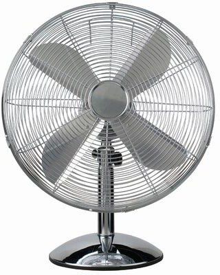 Wentylator stołowy marki KEPLAND o średnicy 31 cm w kolorze czarnego chromu.