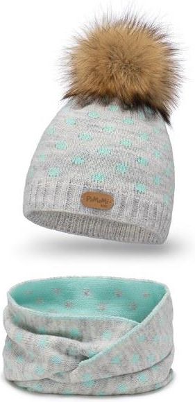 Komplet Dziecięcy PaMaMi Czapka Komin Off-White Komplet dziecięcy w kolorze off-white, składający się z czapki z kropkami oraz futerkowym pomponem i komina. Czapkazostała podszyta miękkim polarem, co zapewnia ochronę przed mrozem nawet w najchłodniejsze dni. Komin zawijany na dwa razy otula szyję, gwarantując ciepło i komfort noszenia. Dzięki zastosowaniu delikatnych materiałów, zestaw jest przyjazny dla skóry dziecka, nie powodując podrażnień. Główne cechy Ocieplenie: Polarowe podszycie czapki (3/4) dla dodatkowej ochrony przed zimnem. Dopasowanie: Czapka i komin idealnie przylegają do główki i szyi dziecka. Pompon z futerka: Uroczy dodatek, który dodaje stylu. Materiał: Wykonany z 85% akrylu i 15% poliamidu. Najważniejsze korzyści Komfort noszenia: Delikatna w dotyku, nie gryzie, ani nie podrażnia skóry. Ochrona przed mrozem: Doskonały na zimowe spacery i zabawy na świeżym powietrzu. Łatwość użytkowania: Komin zawijany na dwa razy, przyjemnie otula szyję. Specyfikacja Obwód głowy: 50-55 cm Wiek: 3-7 lat Materiał: 85% akryl, 15% poliamid Wymiary czapki: 20cm (wys.) x 22 cm (szer.) Polarowe podszycie: tak Pompon: tak Komin: luźny, na dwa razy Wymiary komina: 20 cm (wys.) x 58 cm (szer.) Kolor: off-white FAQQ: Czy zestaw nadaje się na bardzo zimne dni? A: Tak, czapka z polarowym podszyciem i komin zapewniają ochronę przed siarczystymi mrozami.Q: Czy materiał jest przyjazny dla skóry dziecka? A: Zdecydowanie! Zestaw jest delikatny w dotyku i nie powoduje podrażnień.