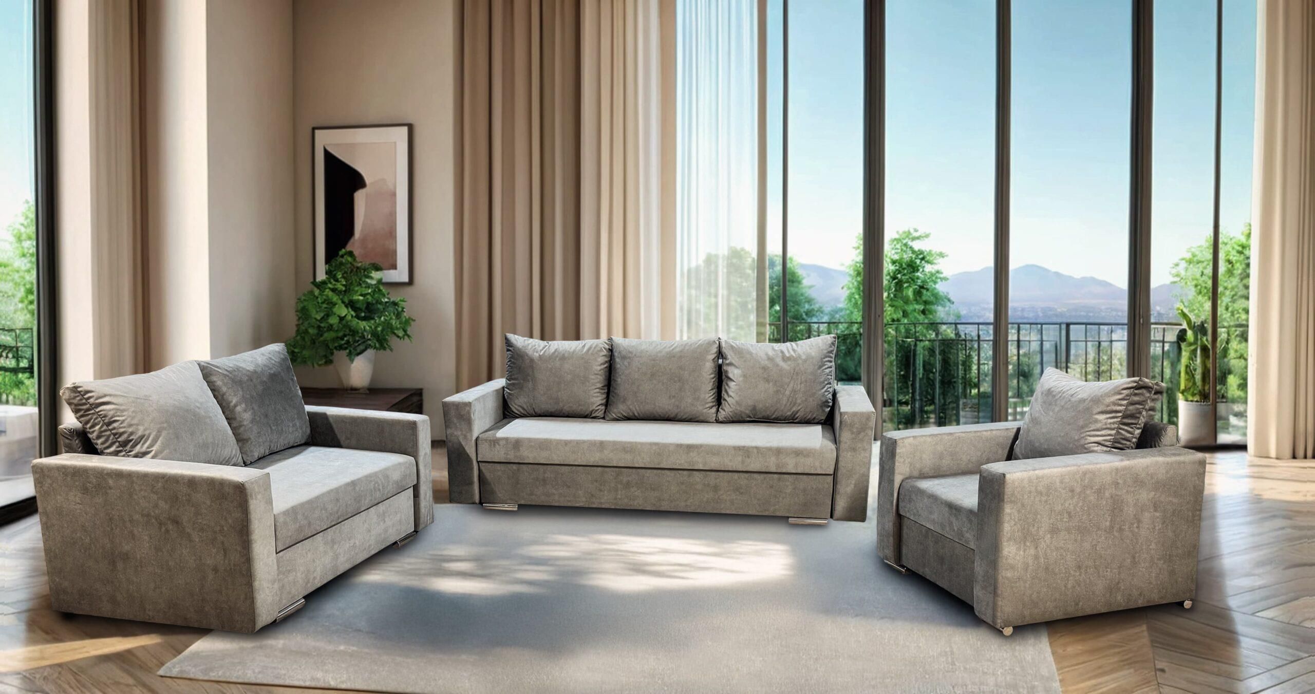 Komplet wypoczynkowy 3+2+1 MATRIX III Tkanina PREMIUMZdjęcie przestawia realny wygląd zestawu. Nie jest wizualizacją komputerową.Zestaw który wkomponuje się w Twoje wnętrze Wyjątkowy zestaw mebli do salonu, w nieprzemijająco modnym, klasycznym stylu przejawiającym się w prostych kształtach luźnych poduszek oraz charakterystycznych, kanciastych boczkach.Ruchome poduszki pozwalają na idealne dopasowanie do osoby siedzącej, a szerokie zaokrąglone boczki, zapewniają komfort dla przedramion. Taki zestaw jest idealny do nowoczesnych, minimalistycznych wnętrz gdzie liczy się funkcjonalność , komfort, estetyka bez zbędnych ozdobników.Oryginalny design i funkcjonalnośćKanapa trzyosobowa w standardzie posiada funkcję spania (145/190 cm). Staranne wykonanie oraz zastosowanie materiałów najwyższej jakości- zarówno siedzisk mebli jak i powierzchni spania wykonane są w systemie sprężyn bonelowych pokrytych wysoko elastyczną pianką HR, gwarantuje wieloletnią satysfakcję z użytkowania. Kanapa trzyosobowa: szerokość: 225 cm, szerokość boczka: 17 cm wysokość boczka: 58 cm, wysokość z poduszkami: 95 cm, głębokość siedziska: 55 cm, głębokość z oparciem: 85 cm, posiada schowek na pościel, szerokość siedziska: 191 cm wysokość siedziska: 42 cm, funkcja spania o wymiarze 190/145 cm Kanapa dwuosobowa: szerokość: 158 cm głębokość siedziska: 55 cm głębokość całkowita: 85 cm wysokość z poduszkami: 95 cm Fotel: szerokość: 98 cm szerokość siedziska: 64 cm wysokość z poduszkami: 95 cm, wysokość siedziska: 42 cm, głębokość siedziska: 55 cm, głębokość z oparciem: 85 cm, szerokość boczka: 17 cm Konfiguracja na zamówienie jak i wymiary mogą ulec zmianie, np. 3+1+1 lub 2+2+1.Do zestawu można dokupić również pufy.Cenna dotyczy wykonania w tkaninie PREMIUMRealizuję również meble na indywidualne zamówienie (wymiary, strony, szycia, wzory, układy, wybarwienia listew wykończeniowych itp.). Dysponujemy tkaninami plamoodpornymi łatwo czyszczącymi firmy Fargotex i wielu innych producentów.TKANINY OBICIOWEPracujemy wyłącznie na sprawdzonych produktach polskich i zagranicznych producentów (nie korzystamy z wschodnich podróbek).Naszym priorytetem jest dokonanie wszelkich starań, aby Nasi klienci byli zadowoleni.Meble wykonane są z wysokiej jakości polskich materiałów.Aby uzyskać więcej informacji, proszę o kontakt z naszymi sprzedawcami: Tel: 788 509 803Tel: 661 442 118 Istnieje możliwość obejrzenia oferowanych przez naszą firmę mebli przez 6 dni w tygodniu. Od poniedziałku do piątku w godzinach 8:00-17:00 oraz w sobotę od godziny 8:00 do 12:00 w siedzibie naszej firmy.UWAGA! WNOSZENIE TOWARU W ZAKRESIE KLIENTA! MEBLE MIESZCZĄ SIĘ W DRZWIACH 80 CM.Czas realizacji zamówienia od 2 do 4 tygodni. Możliwy szybszy czas realizacji, jeśli dany model znajduje się na stanie magazynowym.