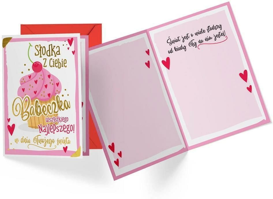 Karnet / Kartka "Słodka babeczka (Wszystkiego Najlepszego)", PR-400 Kartka na Urodziny - Passion Premium z nadrukiem "Słodka babeczka (Wszystkiego Najlepszego)" o wymiarach B6 (16,6 cm x 11,7 cm po złożeniu). Kartki z serii Passion Premium to świetny pomysł na piękną pamiątkę, każda kartka jest zdobiona przynajmniej dwoma rodzajami uszlachetnień - metaliczne lub perłowe folie, brokat, tłoczenie itp. - tyle piękna w takim drobiazgu (uzależnione od rodzaju kartki)! Każda kartka Passion Premium ma kolorowe wnętrze z tekstem wyjątkowych życzeń i grafiką, w komplecie jest także dopasowana kolorystycznie koperta. Karnety, znane również jako kartki, to uniwersalny produkt, który znajduje zastosowanie w wielu sytuacjach. Mogą być używane jako kartki z okazji różnych uroczystości, takich jak urodziny, śluby, chrzty czy Boże Narodzenie, ale również jako karty podziękowania lub życzenia powrotu do zdrowia. Uniwersalność - karnety można wykorzystać w różnych sytuacjach, od urodzin po Boże Narodzenie, dzięki czemu są to uniwersalne prezenty. Osobisty charakter - wpisanie własnych życzeń i dedykacji na karcie sprawia, że prezent staje się bardziej osobisty i dedykowany konkretnemu odbiorcy. Estetyka - karnety zazwyczaj są bardzo estetyczne i eleganckie, co dodaje im wartości jako prezentu.