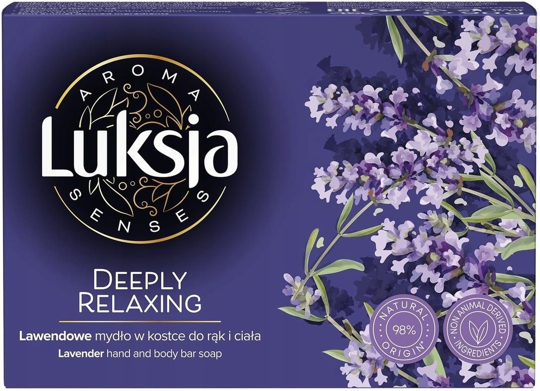 Luksja Aroma Deeply Relaxing kremowe mydło w kostce 90g Lawenda Zamień codzienny rytuał kąpielowy w chwilę relaksu i ukojenia. Zaopatrz się w lawendowe mydło w kostce Luksja Aroma Senses Deeply Relaxing.Kosmetyk o starannie dobranych składnikach oraz urzekającym aromacie, rozpieszcza ciało i zmysły, odpowiadając na potrzeby pielęgnacyjne skóry na etapie oczyszczania.Zastosowanie danego mydła nie tylko pozwoli Tobie zachwycać higienicznie czystą, ale również zdrową, miłą w dotyku i promienną skórą każdego dnia.Przekonaj się sama/sam, kusząc się na jego zakup już dziś! Właściwości produktu Kremowe mydło w kostce Luksja Aroma Senses Deeply Relaxing: zawiera aż 98% komponentów pochodzenia naturalnego zgodnie z ISO 16128 bazuje na wegańskiej formule, pozbawionej składników pochodzenia odzwierzęcego dzięki zawartości roślinnych składników myjących, efektywnie oczyszcza i pielęgnuje skórę rąk i ciała przywraca skórze aksamitną miękkość, gładkość i delikatność w dotyku intensywnie nawilża naskórek, zapobiegając jego nadmiernemu przesuszaniu zostało poddane testom dermatologicznym otula ciało kojąco – relaksującym zapachem lawendy. Waga netto: 90g. Skład: Sodium Palmate, Sodium Palm Kernelate, Aqua, Parfum, Glycerin, Lavandula Angustifolia Flower, Sodium Chloride, Tetrasodium EDTA, Tetrasodium Etidronate, Amyl Salicylate, Beta-Caryophyllene, Camphor,Citrus Aurantium Peel Oil, Coumarin, Dimethyl Phenethyl Acetate, Eucalyptus Globulus Oil, Geraniol, Lavandula Oil/ Extract, Limonene, Linalool, Linalyl Acetate, Terpineol, CI 77007, CI 77891.Lista składników może się różnić w zależności od serii produktu. Najbardziej aktualną listę znajdziesz na opakowaniu produktu. Bezpieczeństwo, zgodność i ostrzeżenia Lista ostrzeżeń dotyczących bezpieczeństwa produktów z kategorii: Kąpiel i prysznic oparta o wymagania Rozporządzenia (UE) 2023/988 w sprawie ogólnego bezpieczeństwa produktów (GPSR):1. Ryzyko poślizgnięcia: Zachowaj ostrożność, mokra powierzchnia może być śliska. Używaj mat antypoślizgowych.2. Temperatura wody: Sprawdź temperaturę wody przed wejściem do wanny lub pod prysznic, aby uniknąć poparzeń.3. Alergie: Zapoznaj się ze składem kosmetyków, aby uniknąć reakcji alergicznych.4. Urazy mechaniczne: Uważaj na ostre krawędzie i elementy armatury łazienkowej, które mogą spowodować skaleczenia.5. Zanieczyszczenia: Nie używaj produktów do kąpieli z widocznymi zanieczyszczeniami.6. Przechowywanie: Przechowuj kosmetyki w miejscu niedostępnym dla dzieci i zwierząt.7. Dozowanie: Stosuj kosmetyki zgodnie z zaleceniami producenta. Zbyt duża ilość może być szkodliwa.8. Wypadki: Nigdy nie zostawiaj dzieci bez nadzoru w wannie lub pod prysznicem.9. Utylizacja: Zużyte opakowania wyrzucaj do odpowiednich pojemników na odpady.10. Interakcje: Nie mieszaj różnych produktów do kąpieli, ponieważ mogą wywołać niepożądane reakcje.11. Problemy zdrowotne: Jeśli masz problemy skórne lub inne dolegliwości, skonsultuj się z lekarzem przed użyciem nowych kosmetyków.12. Używanie urządzeń elektrycznych: Nie używaj urządzeń elektrycznych w pobliżu wody.13. Oparzenia: Unikaj bezpośredniego kontaktu skóry z gorącą parą.14. Połknięcie: Uważaj, żeby nie połknąć płynów do kąpieli lub innych kosmetyków. Dane producenta Sarantis Polska S.A. Ul. Puławska 42C, 05-500 Piaseczno Infolinia: 801801831