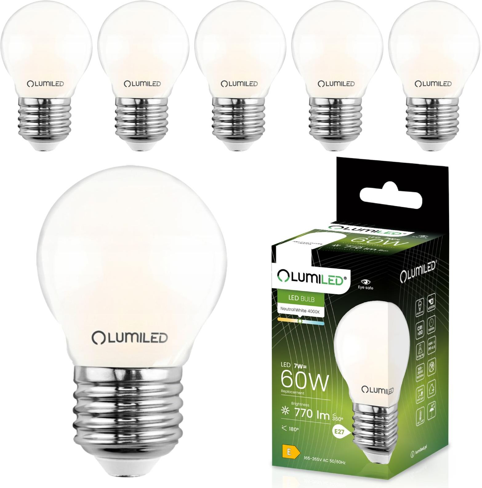 LUMILED E27 żarówka LED P45 7W zastępuje (60W żarówka) 6 sztuk zestaw mleczny | 770lm 4000K neutralna biel | 360 stopni kąt świecenia 230V | żarówka ż Rzeszów