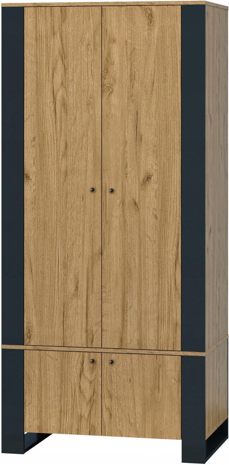 Nowoczesna szafa z kolekcji Wood Szafa 4d posiada drążek na wieszaki oraz półki, dzięki czemu pomieści wiele niezbędnych rzeczy przede wszystkim ubrań i dodatków. Czarne elementy wydobywają piękno odcienia dąb craft złoty. Nowoczesny styl łączy klasyczne drewno z industrialnymi, metalowymi …