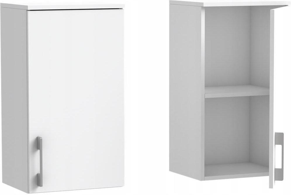 Nadstawka do regału, szafy biurowej M 1D biały 30 x 40 cm Nadstawka pasuje do mebli z kolekcji Regały M. Regał (182 cm) z nadstawką daje nam wysokość zabudowy 254 cm (bez zamontowanych nóżek 251 cm). Informacje dodatkowe klasyczne wzornictwo dwie wytrzymałe półki dopasowany do segregatorów biurowych podwyższona odporność na zarysowania korpus i front w kolorze biały mat dostępne inne wersje regału M Regał do samodzielnego montażu z czytelną instrukcją. Wymiary nadstawki szerokość 30 cm wysokość 72 cm głębokość 40 cm odległość miedzy półkami 33 cm Wnętrze nadstawki. Nadstawkę wyposażono w drzwiczki, za którymi znajdują się dwie półki. Materiał. Korpus oraz front wykonano z płyty laminowanej producenta Kronopol o grubości 16 mm w kolorze biały mat. Plecy zrobiono z płyty HDF 3 mm. Obrzeża. Krawędzie płyty są oklejone PCV odpornym na wilgoć i zarysowania.