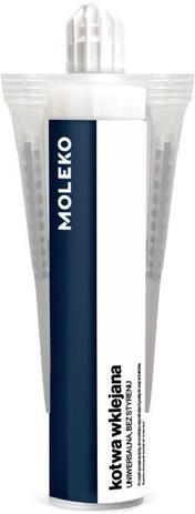 Moleko Kotwa Chemiczna do Średnich Obciążeń jak Wsporniki Meble Poręcze 300ml Kotwa chemiczna Moleko charakteryzuje się bardzo dużą wytrzymałością połączeń. Produkt może być używany do montażu konstrukcji o średnim obciążeniu, takich jak: bramy, poręcze, wsporniki, schody, elementy okienne, zadaszenia. Dodatkowo kotwę chemiczną Moleko można wykorzystać do przymocowania do ścian lżejszych przedmiotów np. sanitariaty, elektronika, meble czy sprzęt sportów Właściwości: • możliwość pracy w różnych warunkach atmosferycznych i środowiskach chemicznych • brak naprężeń mających negatywny wpływ na podłoże, • duża odporność na drgania, wyrywanie i ściskanie, • duża siła kotwienia przy niewielkiej głębokości otworu • wysoka szczelność mocowania, • elastyczne wymiary (kotwa dopasowuje się do głębokości i średnicy otworu), • możliwość zastosowania w trudno dostępnych miejscach