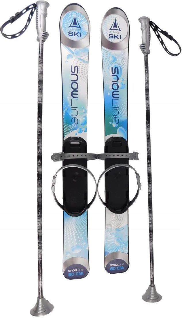 Narty z kijkami do nauki jazdy dla dzieci.Narty wykonane są z lekkich, wysokiej jakości materiałów.Posiadają regulowane zapięcia - pasek mocujący przednią część buta można zamontować w jednym z trzech otworów mocujących.Przeznaczone do nauki jazdy przez dzieci,Wyprodukowane przez polskiego producenta z wytrzymałego materiału PP.Narty wyposażone są w antypoślizgową podstawę oraz specjalne rowki zabezpieczające przed jazdą do tyłu. Pod spodem mają żłobienia, dzięki czemu dziecko nie traci równowagi i nie cofa się podczas poruszania.Wiązanie nart przeznaczone jest do zwykłego obuwia zimowego.Zestawnarty + kijkiWymiary- narty - długość 80 cm, szerokość 7 cm, długość buta (mierzona pod podeszwą) ok. 13-22 cm- kijki - ok. 90 cmKolorNarty dostępne w kolorze niebieskim oraz fioletowo-czerwonym - wysyłane losowo.