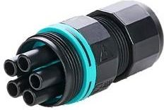 Gniazdo hermetyczne THB.387.B5A umożliwia połączenie ze sobą dwóch przewodów maksymalnie 5 żyłowych o średnicy zewnętrznej od 7mm do 12mm oraz przekroju od 0,25 do 1,5 mm2. Maksymalne natężenie to 17,5A, napięcie znamionowe 450V. Połączenie stanowi razem z wtyczką THB.387.A5A Seria złączek TEEPLUG, …