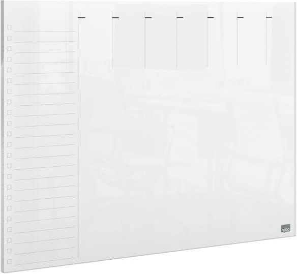 Tygodniowy planer suchościeralny do domowego biura, o nowoczesnym, bezramkowym wzornictwie, z naniesioną siatką do planowania tygodnia, jest idealny do robienia notatek, zapisywania pomysłów lub ważnych dat. Planer może być umieszczony na ścianie za pomocą samoprzylepnych podkładek lub na powierzchni metalowej za pomocą magnesów albo położony płasko na biurku lub innej powierzchni roboczej. Dzięki swej przezroczystości planer płynnie wtapia się w tło, gdy nie jest używany. Akrylową powierzchnię suchościeralną można łatwo wytrzeć do czysta, więc po prostu - zapisz coś, zetrzyj i napisz kolejną notatkę. Dostarczany z markerem do tablic suchościeralnych. Dostarczany z pisakiem do tablic suchościeralnych. Format: A3. suchościeralny planer z przezroczystego akrylu, w nowoczesnym bezramkowym wzornictwie - możesz na nim zrobić notatki, zetrzeć je, i ponownie coś napisać suchościeralny planer z przezroczystego akrylu może być umieszczony na ścianie za pomocą samoprzylepnych podkładek lub na powierzchni metalowej za pomocą magnesów albo położony płasko na biurku lub innej powierzchni roboczej bezramkowa, przezroczysta konstrukcja sprawia, że ​​tabliczka z tygodniowym planerem wtapia się w tło, gdy nie jest używana. format A3 w komplecie marker do tablic suchościeralnych i samoprzylepne podkładki do montażu 1 rok gwarancji na powierzchnię tablicy