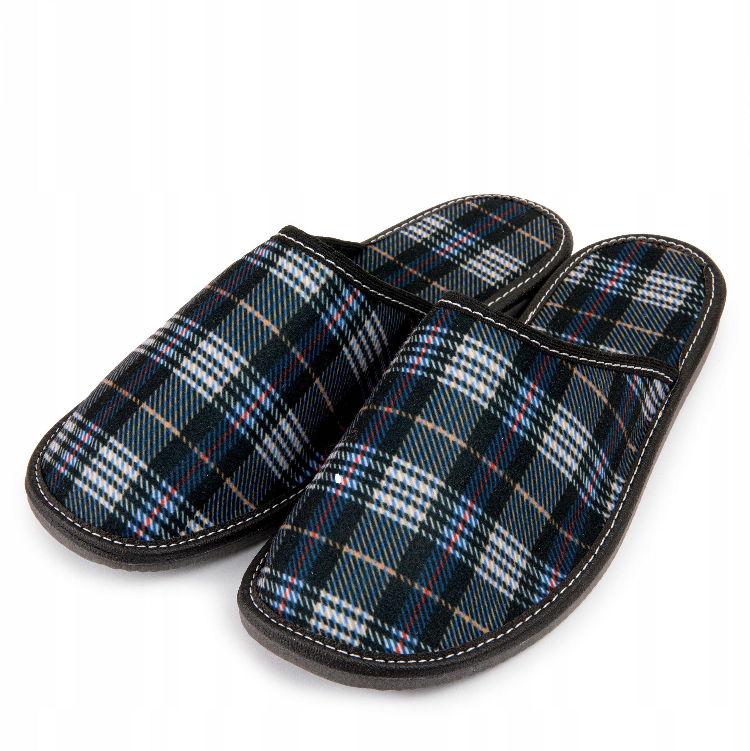 NOWO PANTOFLE MĘSKIE FM-2057, KLAPKI DOMOWE GRANATOWE W KRATKĘ r.43 (N162-NAVY/43) Męskie filcowe kapcie firmy NOWO to nowoczesne obuwie domowe dla Panów. Wyprodukowaliśmy je w Polsce z naturalnego, ekologicznego filcu, zgodnie z lokalnymi tradycjami obuwniczymi. Filc jest materiałem bardzo przyjemnym w dotyku, zapewniającym stopom komfort i umożliwiającym oddychanie. Uniwersalny fason kapci z zamkniętymi palcami sprawdzi się na każdą porę roku. Filcowe kapcie NOWO to komfortowe, modne i trwałe obuwie, wykonane z wysokiej jakości materiałów z dużą troską o szczegóły. Eleganckie, męskie kapcie domowe. Pantofle są nowe, w pierwszym gatunku, bez jakichkolwiek wad. ?Wygodny klin amortyzuje stopę podczas chodzenia, dając poczucie komfortu i odprężenia. ?Podeszwa została podklejona antypoślizgowym i wytrzymałym materiałem wysokiej jakości, dzięki temu kapcie są odporne na ścieranie i będą służyć przez długi czas. ?Klasyczny styl i stonowana kolorystyka sprawiają, że kapcie elegancko się prezentują, ?Zarówno wkładka jak i cholewka wykonane zostały z filcu, ?Charakteryzują się miękkością i wygodą, ?Delikatne podwyższenie amortyzuje stopę podczas chodzenia, co daje poczucie komfortu ?Świetnie sprawdzą się podczas wizyty gości lub jako prezent. Specyfikacja ?Rozmiar: 43 ?Długość wkładki: 27,5 cm ?Materiał zewnętrzny: filc ekologiczny ?Kolor: granatowy ?Typ kapci: zakryte palce ? Motyw: w kratkę ?Materiał podeszwy: guma EVA ?Wysokość obcasa: 15 mm ?Wysokość pod palcami: 5 mm Rozmiar obuwia ?40- 26 cm ?41- 26,5 cm ?42- 27 cm ?43- 27,5 cm ?44- 28,5 cm ?45- 29 cm ?46- 30 cm