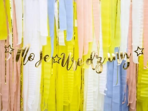 Baner urodzinowy – Moje urodziny w kolorze zlotym. Idealny do połączenia z innymi elementami dostępnymi w Naszym sklepie (kubki, serwetki, balony). Zestaw składa się z następujących elementów. Wysokość liter: ok. 16,5 cm Długość napisy 90 cm Stwórz dekorację urodzin, która nie zostanie zapomniana …