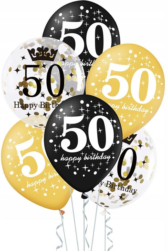 Partypal Zestaw Balonów Na 50 Urodziny Czarno-Złoty 30Cm 6szt. Rzeszów
