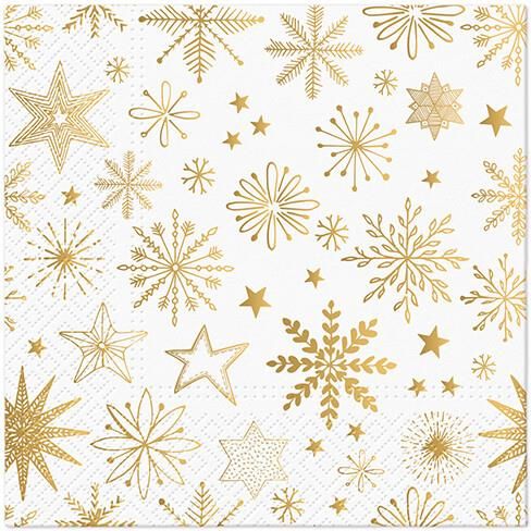 Serwetki Papierowe Swiateczne Boze Narodzenie Sniezynki 20szt 3 WARSTWY!! Dane Produktu Wymiary: 33 cm x 33 cm Ilość w opakowaniu: 20 sztuk serwetek Kolorystyka: Biały ze złotymi, metalicznymi śnieżynkami Materiał: Wysokiej jakości papier Złota Magia Świątecznego Stołu Nasze serwetki to idealny …