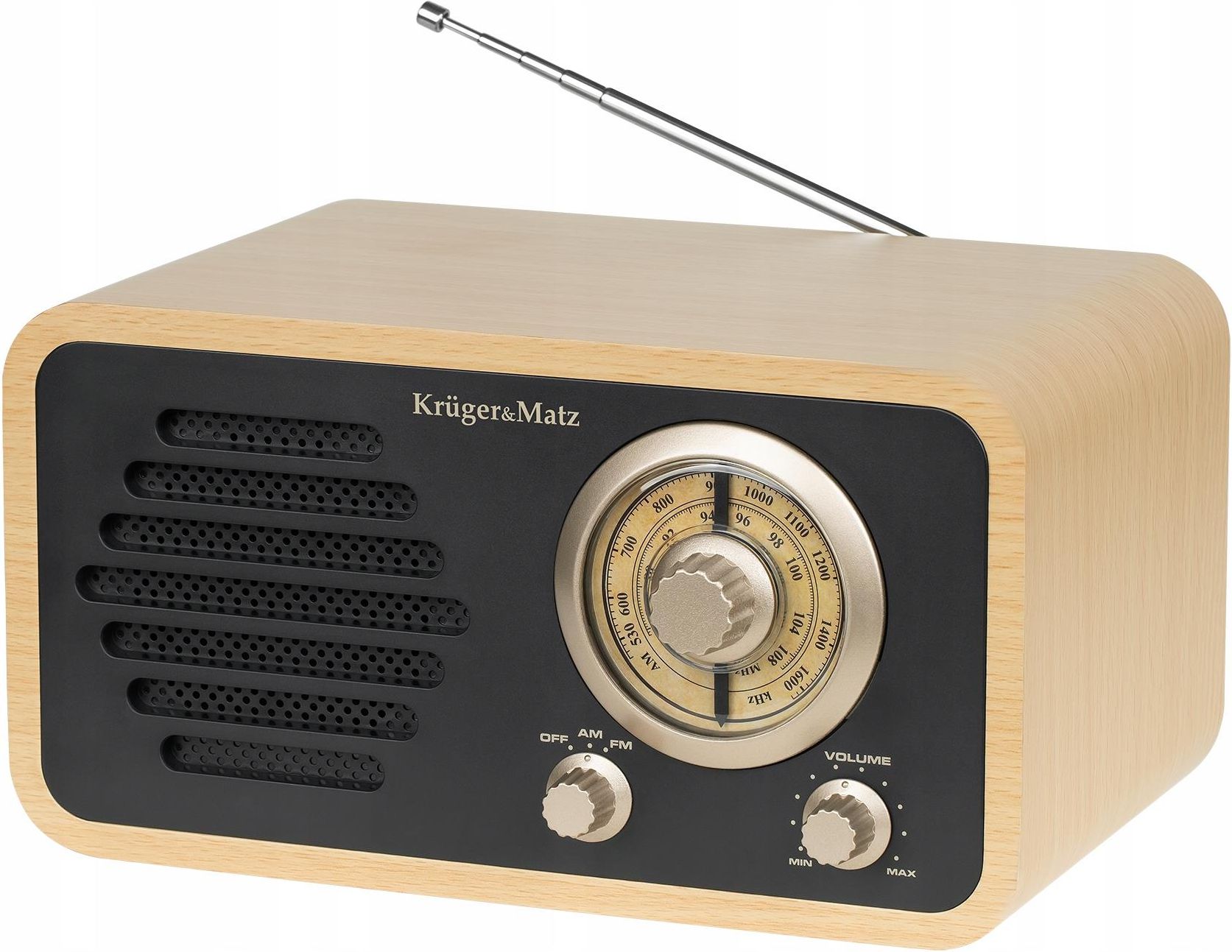 Klasyczne radio Retro | analogowe KrugerMatz | zasilanie sieciowe Składana antena teleskopowa Czuły tuner radiowy ustawiany pokrętłem Wbudowany dynamiczny głośnik Częstotliwość radiowa: FM: 87,5 – 108 MHz Częstotliwość radiowa: AM: 530 – 1600 kHz Głośnik: 4 Ohm / 5 W Zasilanie AC: 230 V; 50 Hz …