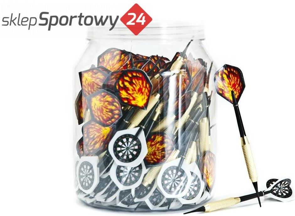 Opis: RZUTKI DO DARTA 16g - 100 szt. SOFTIP Opakowane zawiera 100 szt. rzutek typu SOFTIP do darta. Produkt przeznaczony dla amatorów oraz profesjonalnych zawodników. Słój z tworzywa skrywa sto stalowych beczek (barells) powlekanych mosiądzem z wkręcanymi, nylonowymi grotami. Beczki wyposażono w nylonowe nasadki (shafts) ze sprężynką zapobiegającą wypadaniu piórek. Zestaw zawiera także piórka z grafika w dwóch wzorach kolorystycznych. Parametry techniczne: Materiał: stal powlekana mosiądzem,nylon Waga: 16g