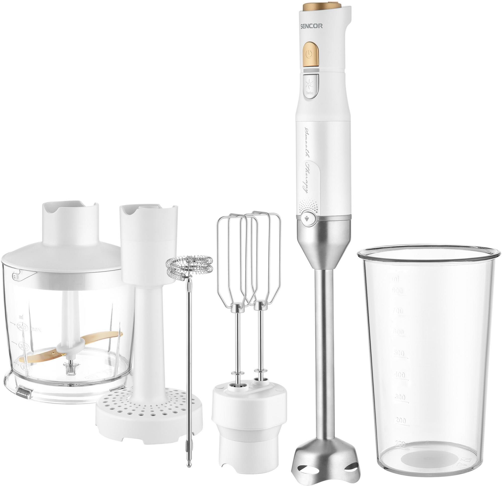BLENDER RĘCZNY 6 W 1   SHB 6441WH Technologia TITANIUM QuadBlade Pobór mocy 1 200 W Stopa miksujące ze stali nierdzewnej o długości 20 cm GŁÓWNE CECHY BLENDER RĘCZNY 6 W 1 GWARANCJA 10 LAT na silnik Technologia TITANIUM QuadBlade Pobór mocy 1 200 W Stopa miksujące ze stali nierdzewnej o długości 20 cm Płynna regulacja obrotów Ergonomiczny uchwyt Wyposażenie ze stali nierdzewnej nadaje się do mieszania gorących potraw Nóż do siekania ze stali nierdzewnej AKCESORIA Naczynie z pokrywką o objętości 800 ml Tłuczek do ziemniaków Podwójny mikser ze stali nierdzewnej Mikser z nożami ze stali nierdzewnej i naczyniem 500 ml 500 ml Przyciski do zwalniania akcesoriów Spieniacz do mleka Długość przewodu zasilającego: 1,2 m DANE TECHNICZNE Moc (W):  1 200 W Płynna regulacja: Tak Materiał końcówki: Stal nierdzewna Trzepaczka: Tak Końcówka do trzepania: Tak Kolor: Biały Blendery Sencor z tytułem Konsumenckiego Lidera Jakości 2025 Marka Sencor zdobyła I miejsce w plebiscycie Konsumencki Lider Jakości 2025 w kategorii „Blendery”. Konsumenci docenili niezawodność, moc i świetną relację ceny do jakości urządzeń Sencor. To dowód na zaufanie, jakim marka cieszy się wśród użytkowników. @media only screen and (max-width: 720px) { .Sencor img { width: 75%; } }