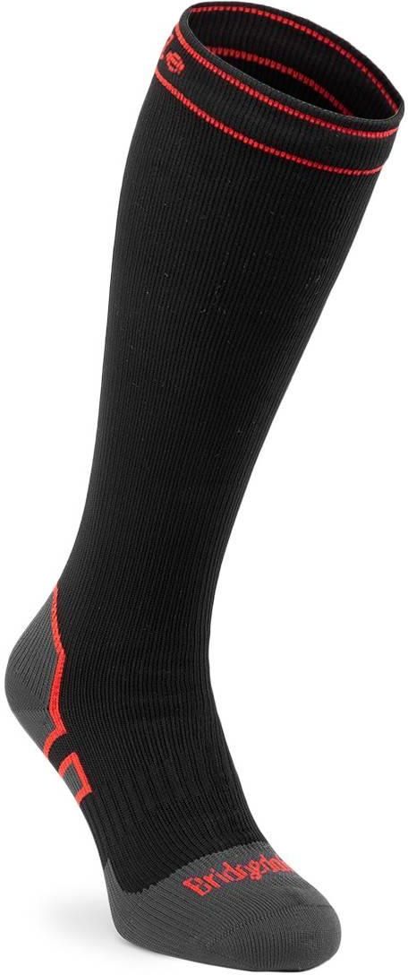 Skarpety wodooszczelne Bridgedale StormSock Heavy Knee - black/red - to model, który idealnie sprawdzi się podczas wędrówek górskich, kiedy panuje deszczowa lub zimowa aura oraz niższe temperatury.