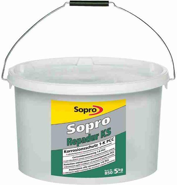 SOPRO REPADUR KS- zaprawa cementowa antykorozyjna. Cementowa zaprawa do antykorozyjnego zabezpieczania elementów zbrojenia w procesie naprawy betonu zgodnie z wymogami ZTV-ING dla systemów przeznaczonych do naprawy betonowych elementów konstrukcyjnych oraz wytycznymi niemieckiej komisji ds. żelbetu …