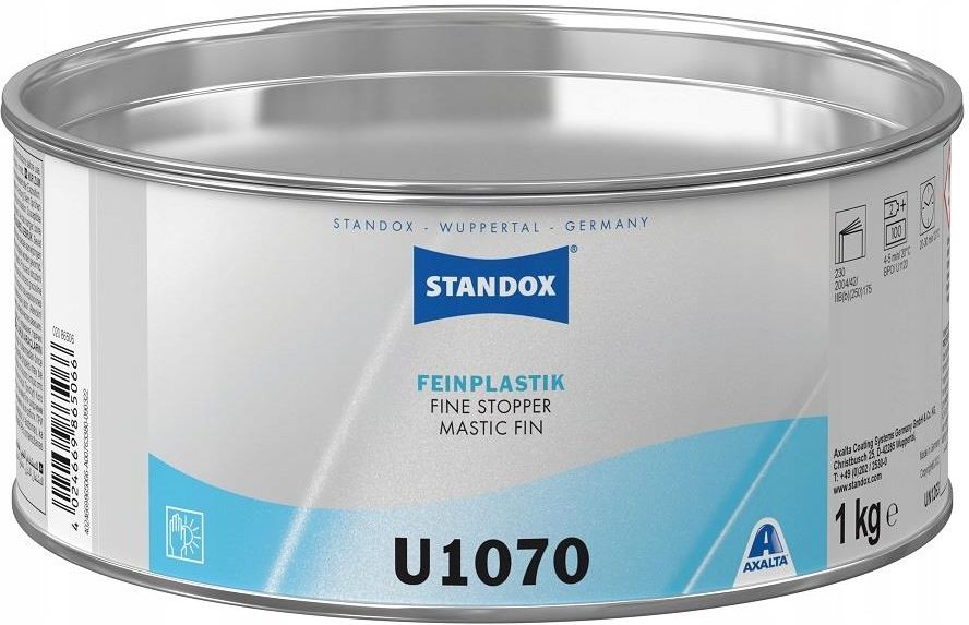 STANDOX SZPACHLA FINE STOPPER U1070 1KG Standox Fine Plastic Putty U1070 to specjalna tiksotropowa, drobnoziarnista szpachla pozwalająca uzyskać gładką powierzchnię przy wielowarstwowej powłoce. Szpachla zapobiega rónież powstawaniu porów podczas szlifowania. Stanowi podstawę znakomitego wykończenia. Do stosowania na gruntowanych twardych elementach z tworzyw sztucznych w samochodach osobowych. WŁAŚCIWOŚCI: Łatwa aplikacja. Gładka warstwa bez porów. Łatwe szlifowanie, szczególnie na przejściach. Do blach stalowych, podłoży na bazie nienasyconej żywicy poliestrowej (UP), tworzyw wzmocnionych włóknami szklanymi oraz aluminium. Drobnoziarnista, dwuskładnikowa szpachla poliestrowa.