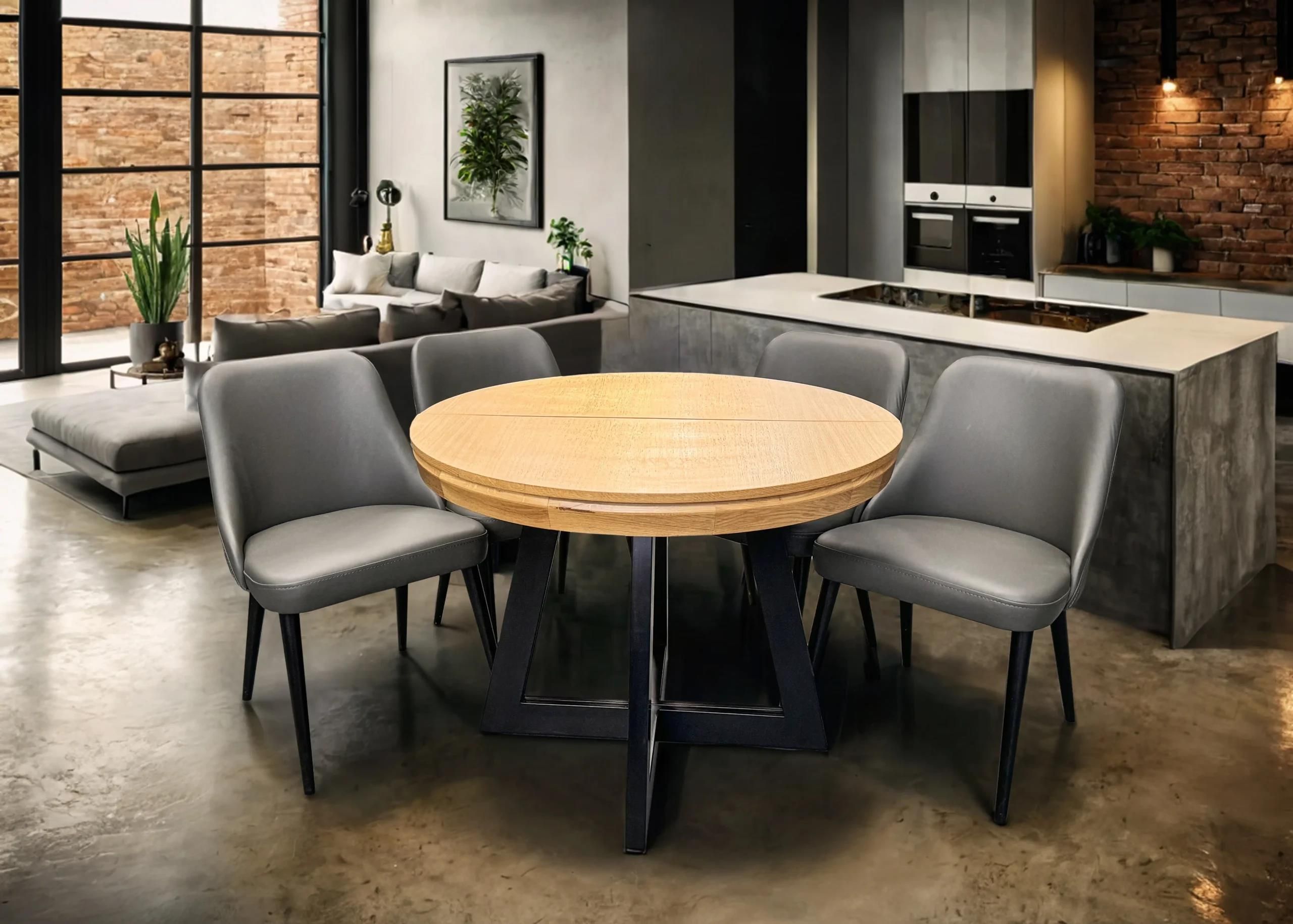 Stół Loft IV 100 cm, 2x wkładki 50 cm + 4 krzesła Filip*Zdjęcie przedstawia rzeczywisty wygląd produktu. Nie jest wizualizacją komputerową. Stół Loft IV – funkcjonalność i elegancja w jednym Stół Loft IV to stylowy mebel, który doskonale uzupełni nowoczesne, industrialne oraz loftowe wnętrza. …