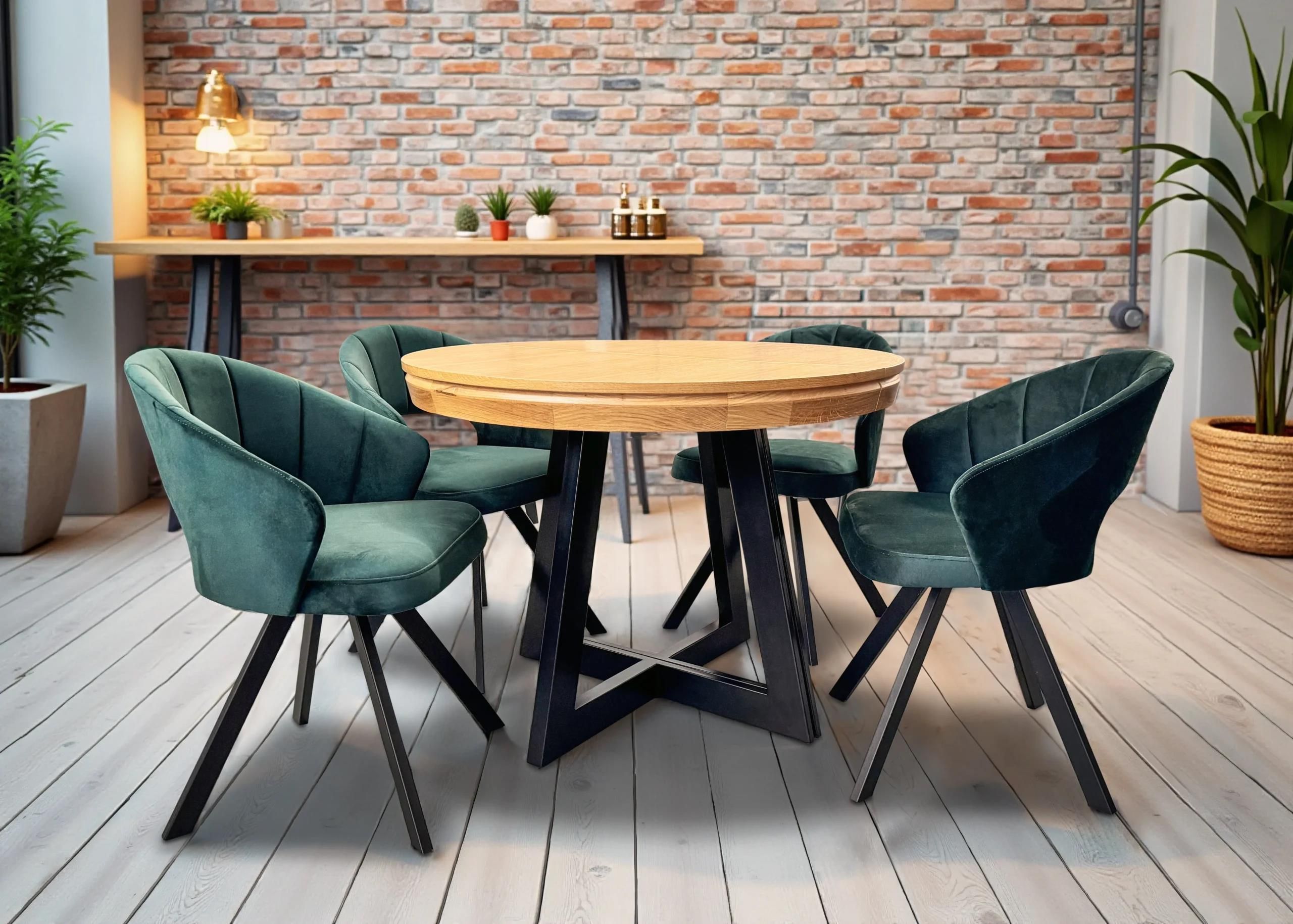 Stół Loft IV blat fornirowany dębowy 100 cm, 2x wkładki 50 cm + 4 krzesła obrotowe Faro Rzeszów