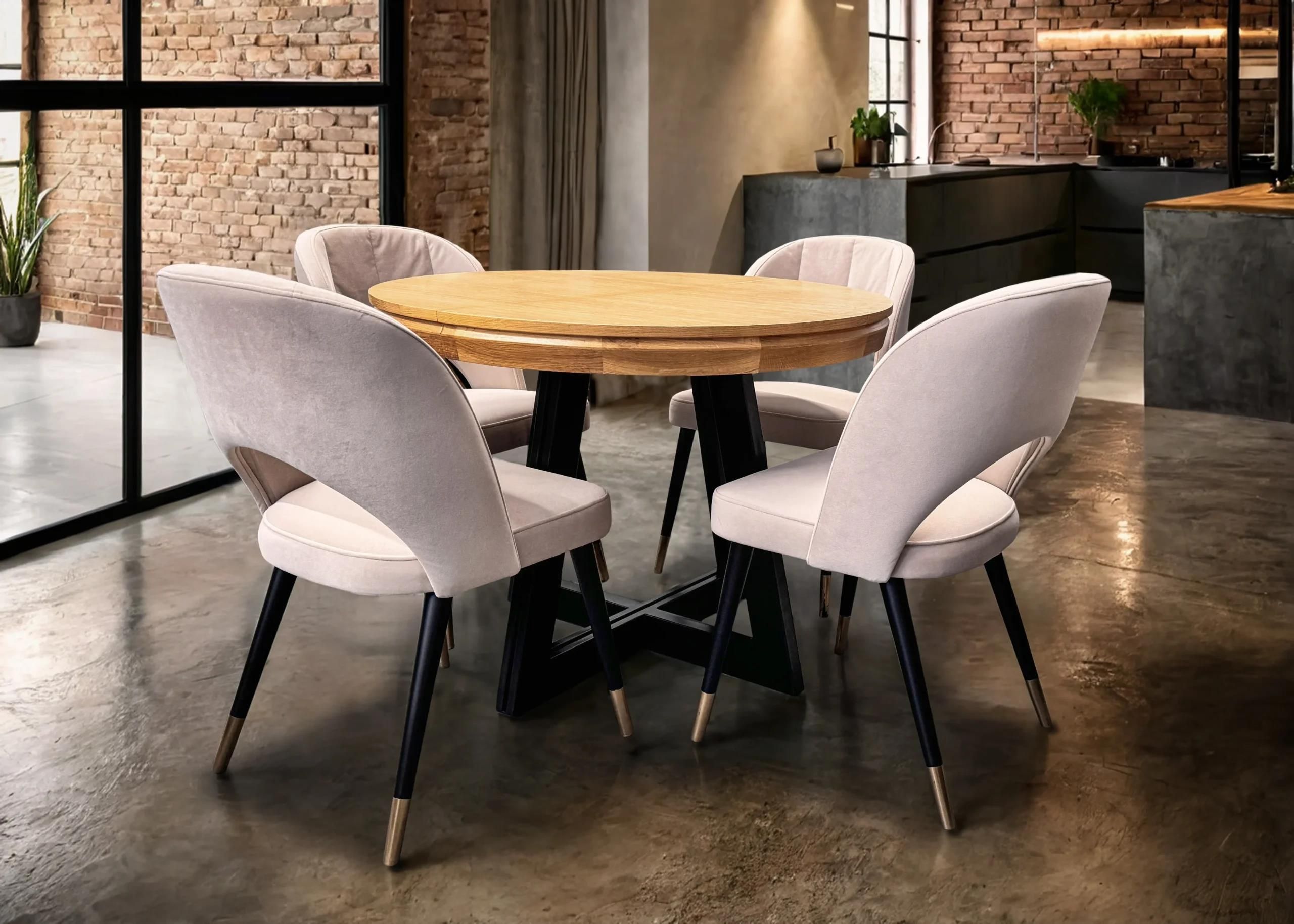 Stół Loft IV + 4 krzesła KW112*Zdjęcie przedstawia rzeczywisty wygląd produktu. Nie jest wizualizacją komputerową. Stół Loft IV – funkcjonalność i elegancja w jednym Stół Loft IV to stylowy mebel, który doskonale uzupełni nowoczesne, industrialne oraz loftowe wnętrza. Okrągły blat o średnicy 100 cm …