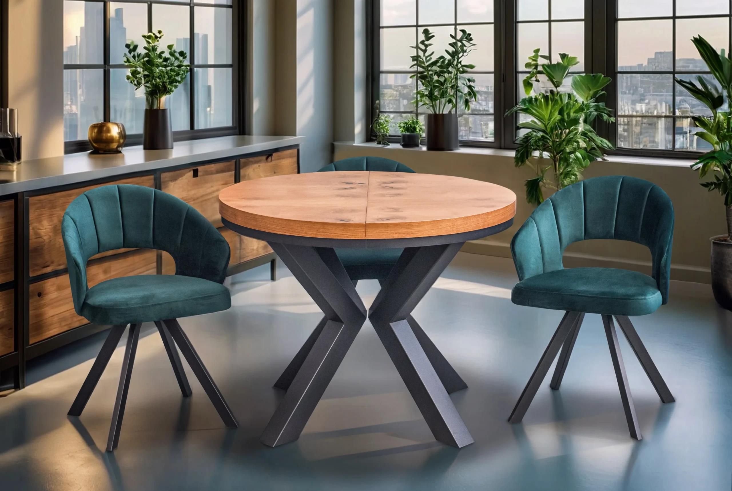 Stół Loft X fi 100 + 2 x 50 cm + 6 krzeseł Kori Rzeszów