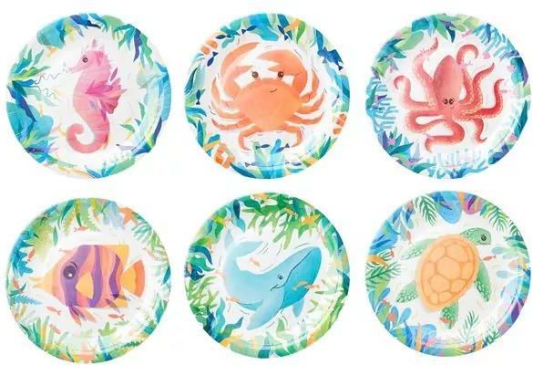 Talerzyki papierowe z motywem "Ocean". W opakowaniu znajduje się 6 sztuk talerzyków o średnicy 18 cm. Idealnie nadają się na przyjęcia w domowym zaciszu, aby dodać akcent elegancji. Dzięki tak pięknym talerzykom możesz uszczęśliwić Swoje dziecko i uatrakcyjnić przyjęcie. Znajdź jeszcze inne elementy pasujące do kolekcji. Nadruk jest wysokiej jakości, tak więc będzie się idealnie prezentować na przyjęciu. Talerzyki papierowe to jednorazowe produkty stworzone z papieru, przeznaczone do użytku na imprezach i uroczystościach takich jak urodziny, wesela, spotkania rodzinne i inne okazje. Są one wygodne i łatwe w użyciu, a także przyjazne dla środowiska. Mogą być dostępne w różnych rozmiarach i kolorach, a także zdobić różne motywy i wzory, aby uzupełnić dekoracje uroczystości. Łatwość użycia: Nie trzeba ich myć ani przechowywać, po zakończeniu imprezy można je po prostu wyrzucić. Ekologiczne: Są one wyprodukowane z papieru, co oznacza, że są przyjazne dla środowiska w przeciwieństwie do talerzy plastikowych. Różnorodność: Dostępne są w różnych rozmiarach, kolorach i wzorach, co pozwala na dopasowanie ich do każdej okazji. Niska cena: Są one tańsze niż talerze ceramiczne lub plastikowe, co sprawia, że są to dobry wybór dla organizacji imprez na dużą skalę.
