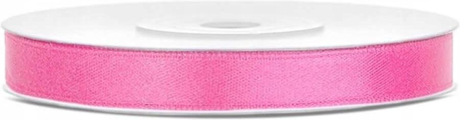 Wstążka satynowa na szpuli. Kolor: różowy, 6 mm x 25 m.