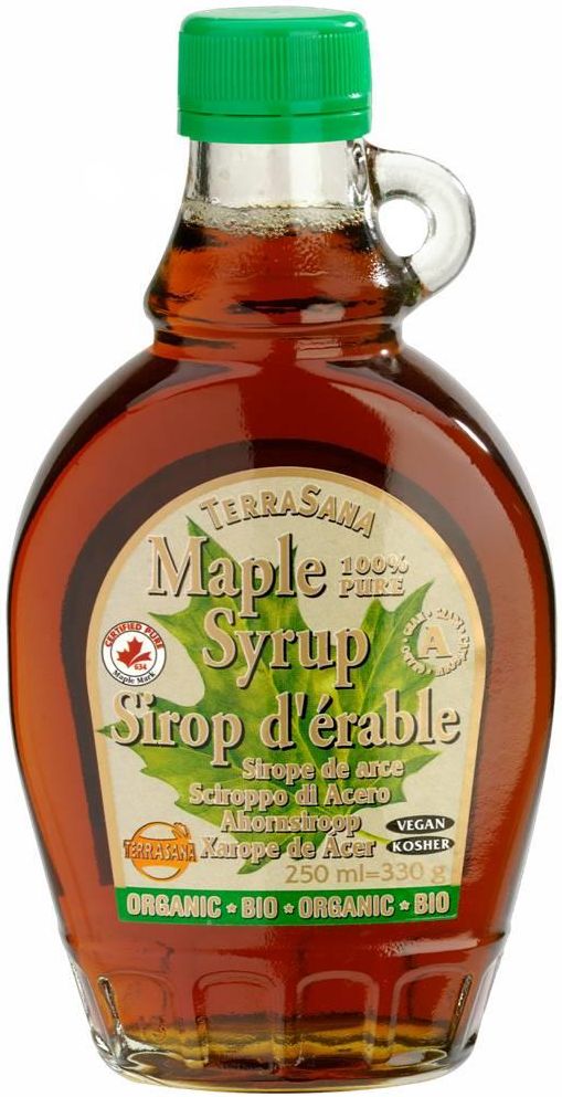 SYROP KLONOWY A BIO 250 ml - TERRASANA SKŁADNIKI 100 % syrop klonowy* klasa A (*certyfikowany składnik ekologiczny) OPIS W zależności od temperatury odparowania uzyskuje się różne rodzaje syropu. Różnią się kolorem i smakiem, jakość pozostaje bez zmian. Typ A – delikatny klonowy smak (złoto …
