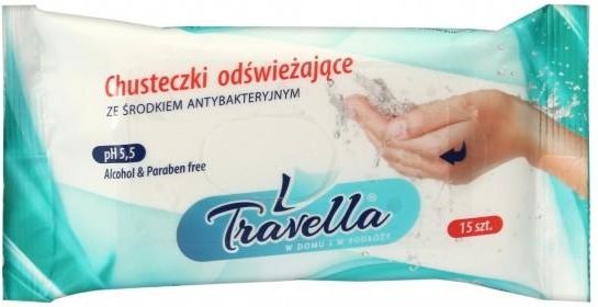 CHUSTECZKI ODŚWIEŻAJĄCE 15SZT TRAVELLA ANTYBAKTERYJNE RAVI Chusteczki odświeżające doskonałe do utrzymania prawidłowej higieny dłoni w podróży, na wakacjach, na spacerze oraz w szkole. Wygodne, niewielkie opakowanie sprawia, że można je mieć zawsze przy sobie. CENA OBEJMUJE 1 SZTUKĘ Chusteczki mają bardzo przyjemny, świeży zapach.