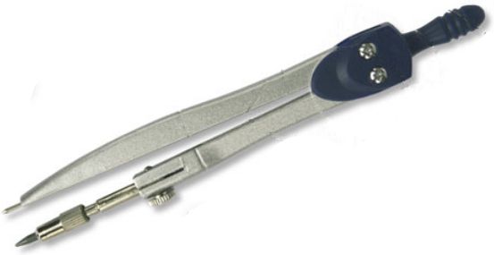 szkolny cyrkiel metalowy trzyelementowy w komplecie: cyrkiel, zapas grafitów i uniwersalny adapter płynnie regulowany rozstaw ramion odkręcane uchwyty do grafitu lub igł transparentne plastikowe etui