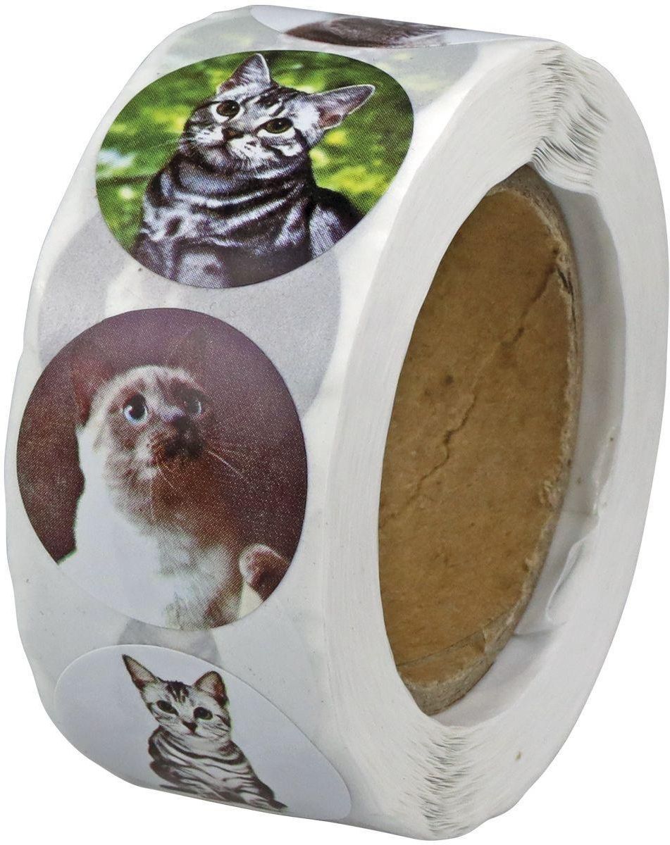 Naklejki papierowe na taśmie 8 wzorów - koty, średnica 25 mm, szerokość taśmy 28 mm, Ilość: 500 sztuk. Produkt zawiera małe elementy. Ryzyko połknięcia, zadławienia, uduszenia. Produkt nie jest przeznaczony dla dzieci. Proszę zachować opakowanie, gdyż zawiera ważne informacje.