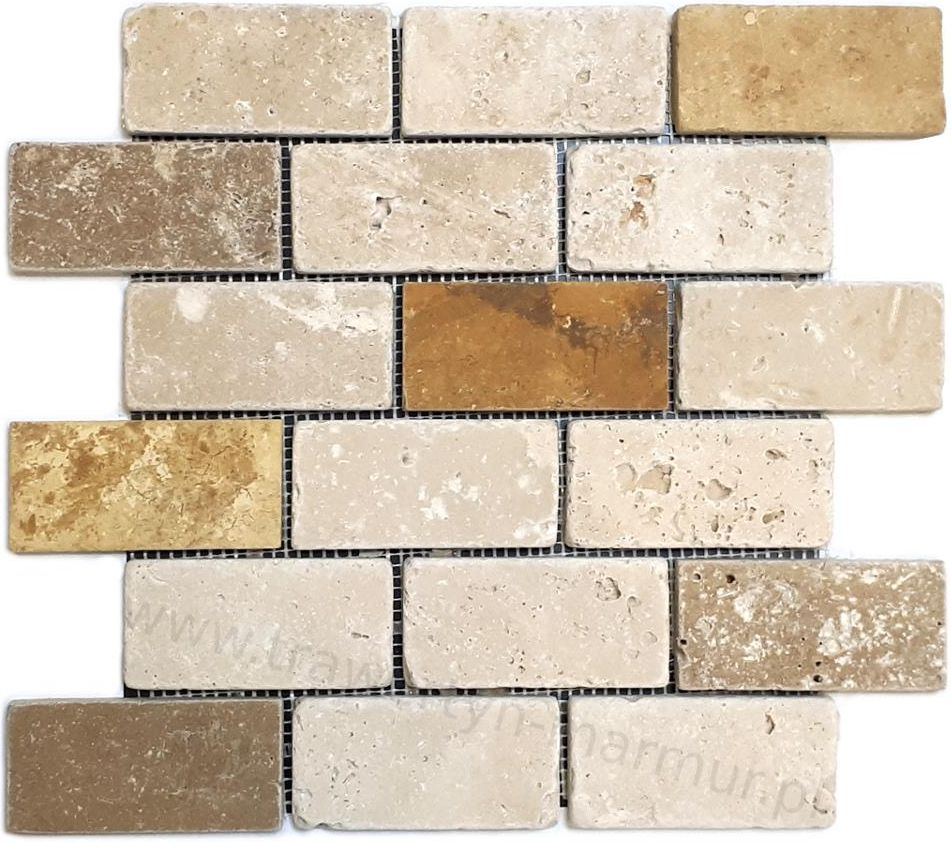 Trawertyn Mozaika Ivory + Noce + Yellow Tumbled 5X10 Rzeszów