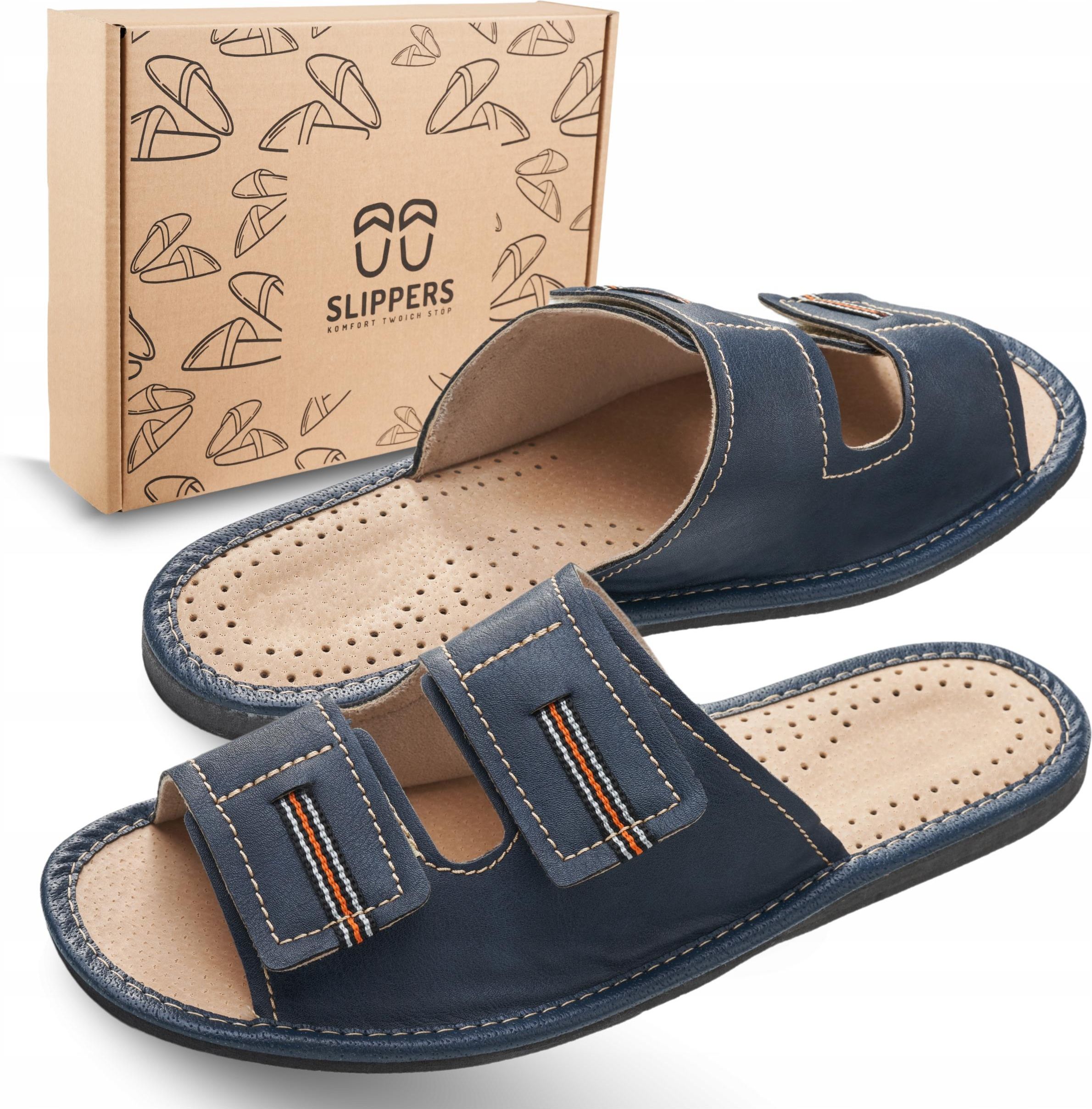 Trwałe Kapcie Męskie Skórzane Domowe Sandały Solidne r. 42 Rzeszów