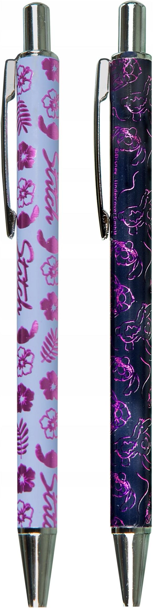 Zestaw zapakowany w eleganckie pudełko, idealne na prezent. Każdy długopis z uroczym wzorem z bajki Lilo and Stitch, idealnie sprawdzi się w tej roli. W zestawie 2 długopisy: w barwie jasnofioletowej w barwie ciemnofioletowej. Szczegóły produktu: wkład wymienny kolor wkładu: granatowy