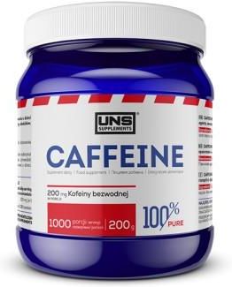Właściwości UNS Caffeine 200g Kofeina przyczynia się do zwiększenia uwagi i czujności pomaga poprawić koncentrację pomaga zwiększyć skupienie pomaga utrzymać witalność fizyczną organizmu poprawia zdolność koncentracji oraz zmniejsza uczucie zmęczenia pobudza i dodaje energii Caffeine od Uns-to suplement diety w postaci proszku, który nie zawiera żadnych substancji dodatkowych UNS Caffeine suplement diety w postaci proszku, który nie zawiera żadnych substancji dodatkowych.Kofeina to składnik, pozyskiwany z nasion kawowca.Charakteryzuje się szybkim działaniem pobudzającym organizm do wzmożonego wysiłku zarówno fizycznego jak i umysłowego. Kofeina jest składnikiem żywności regularnie spożywanym przez większość populacji. Działanie kofeiny polega na pobudzeniu ośrodkowego układu nerwowego, dlatego jest ona uważana za najczęściej spożywaną substancję działającą pobudzająco.Jedna z cech charakterystycznych kofeiny przynosi sportowcom podwójną korzyść. Po pierwsze zwiększa wytrzymałość oraz sprzyja pobieraniu energii z tkanki tłuszczowej, wspomagając jej redukcję.Ze względu na zawartość wyłącznie czystego surowca bez żadnych dodatków smakowych oraz wypełniaczy produkt charakteryzuje się wyjątkowo swoistym smakiem i zapachem. Dawkowanie Caffeine Uns: Porcję 200 mg (1/2 miarki) rozpuścić w 200 ml wody lub soku. Stosować raz dziennie. Składniki Caffeine Uns:Wielkość opakowania: 200gWielkość porcji: 200mgIlość porcji w opakowaniu: 1000Kofeina bezwodna (100%). Składniki aktywne Ilość w porcji dziennej Kofeina bezwodna 200 mg